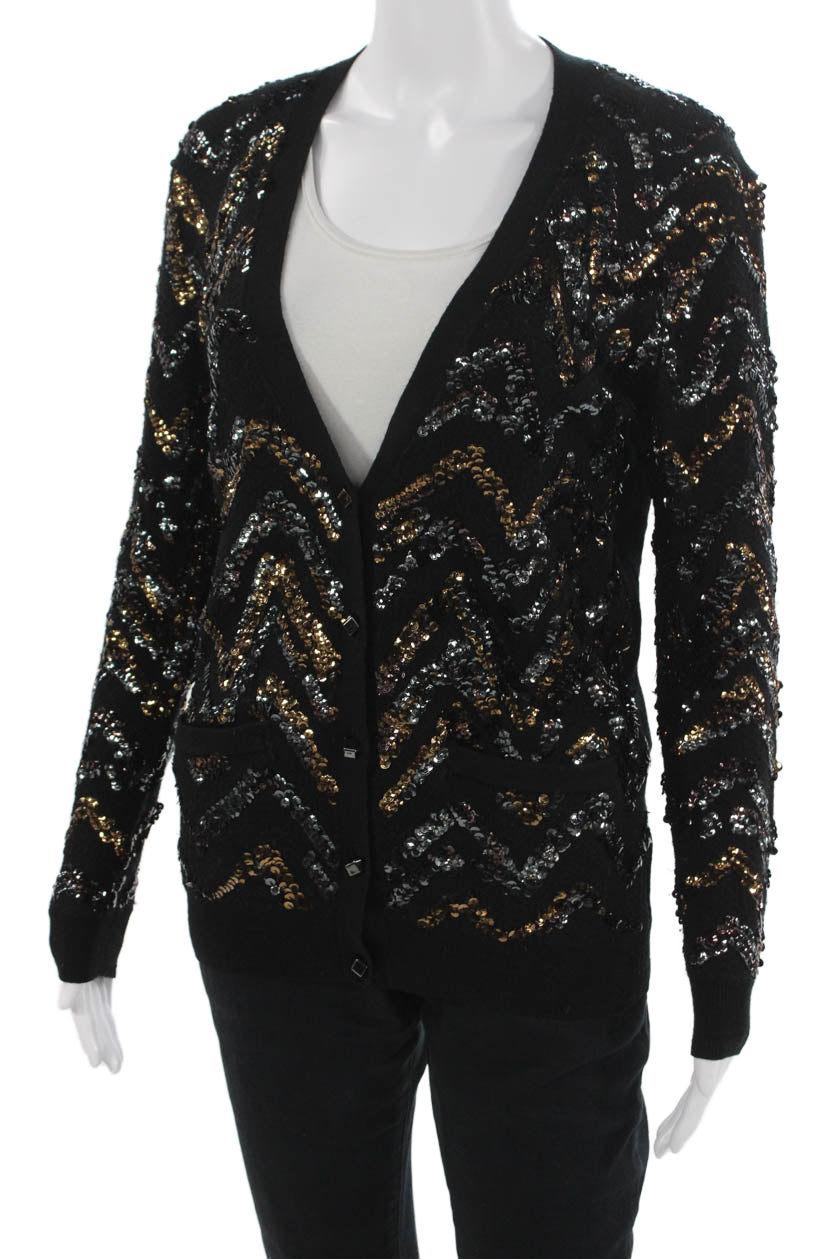 Marc By Marc Jacobs Women V Neck Geometric Wool Cardigan Button Size S