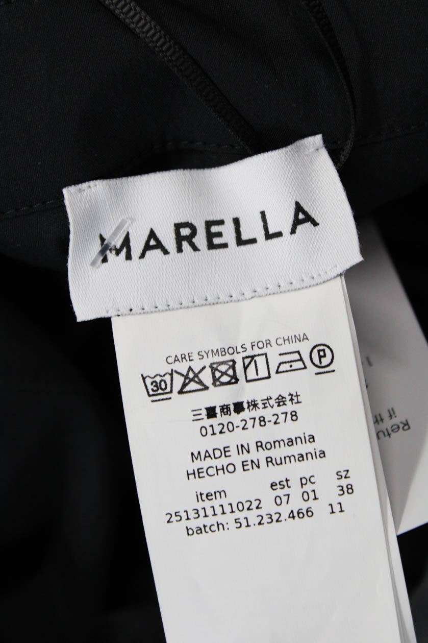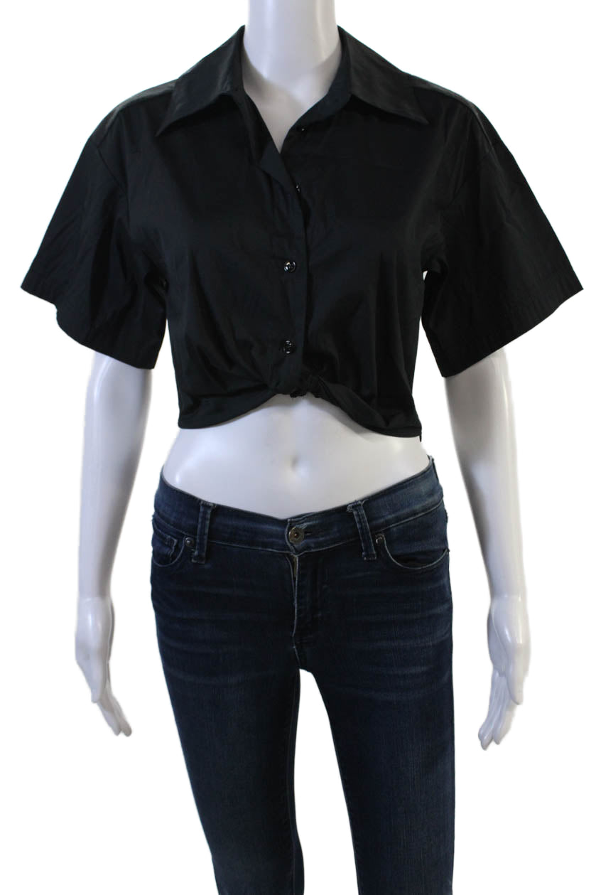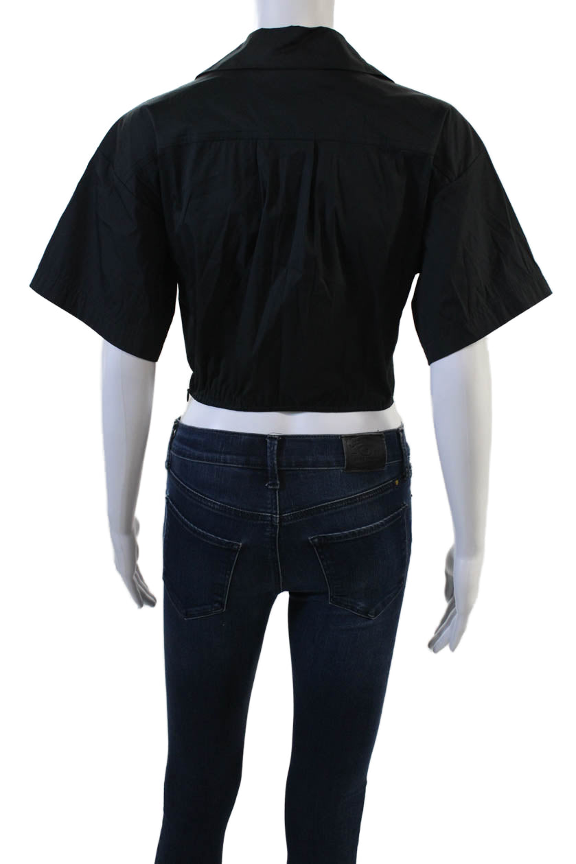 • Marella Womens Cropped Button-Up Collared Short Sleeve Black Cotton Top Size 38