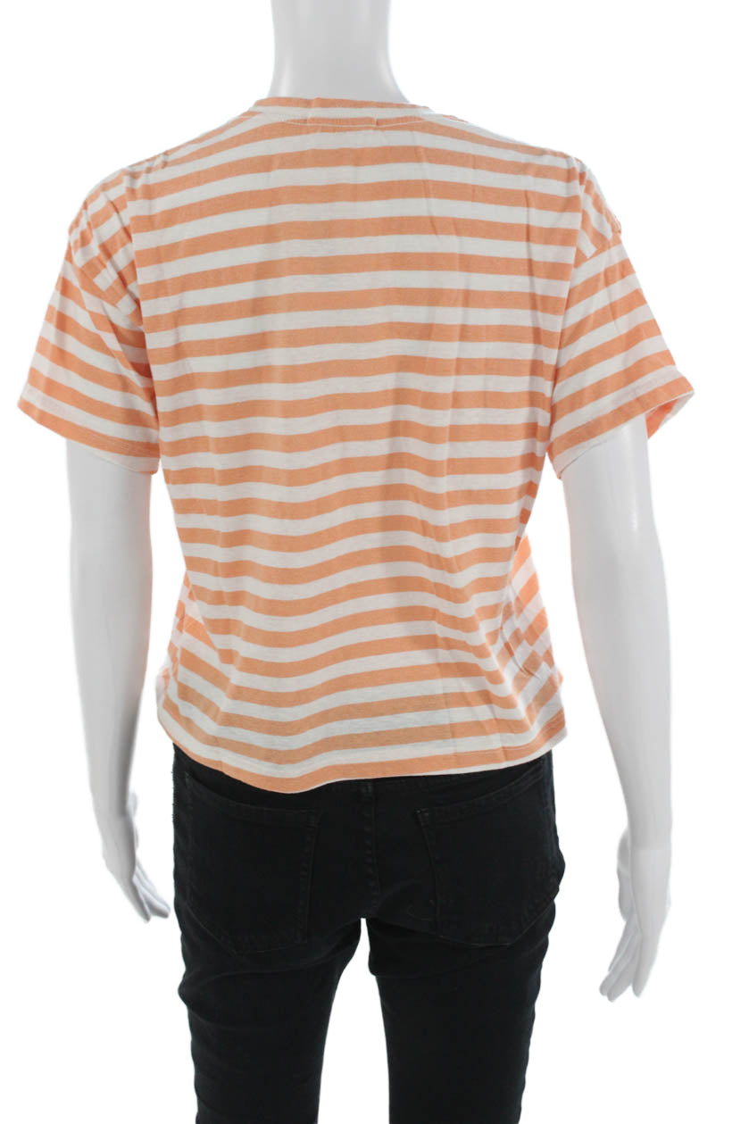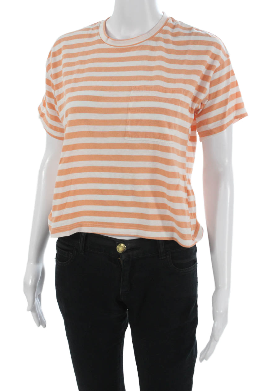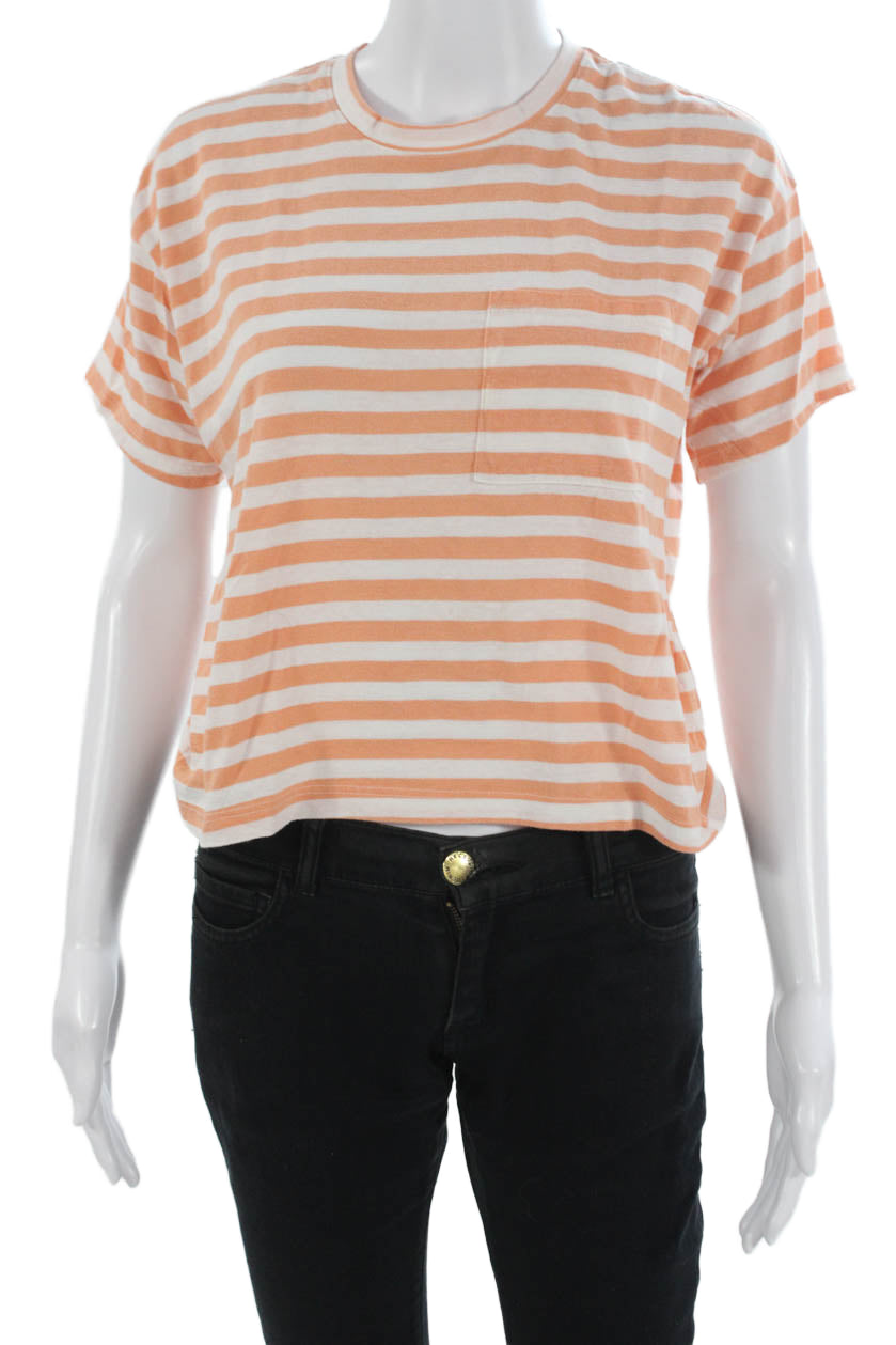 Marine Layer Womens Cropped Striped Tee Orange Size M