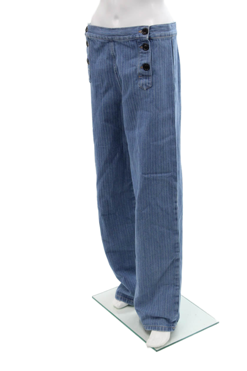 Masscob Womens Cotton Medium Wash Buttoned Wide-Leg Jeans Blue Size 38