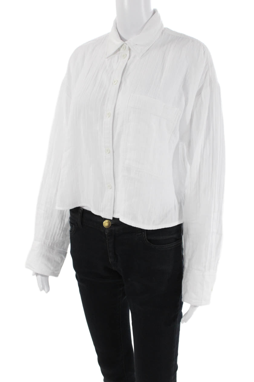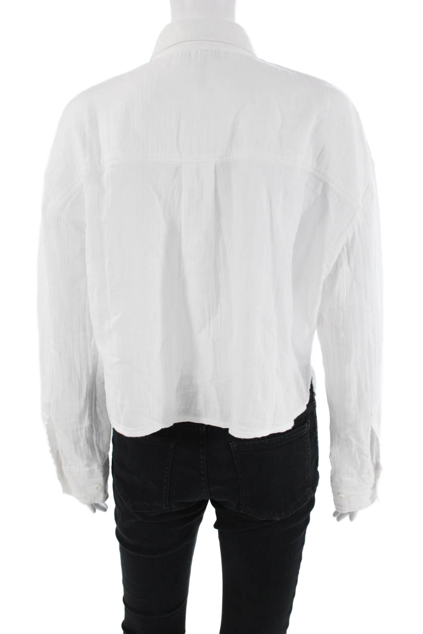 Me + Em Womens Textured Long Sleeve Button Up Blouse White Size 02