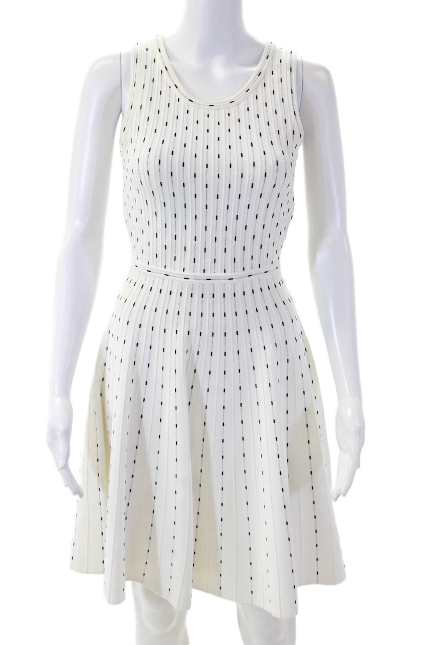 Milly Womens Fit & Flare Tank Dress White Knee Length Round Neck Size S