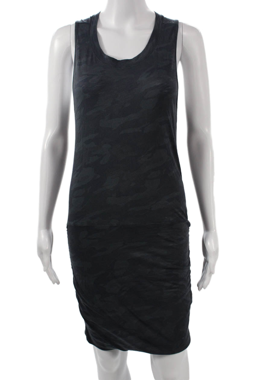 Monrow Womens Tank Dress Black Camouflage Sleeveless Mid-Calf Cotton Size S