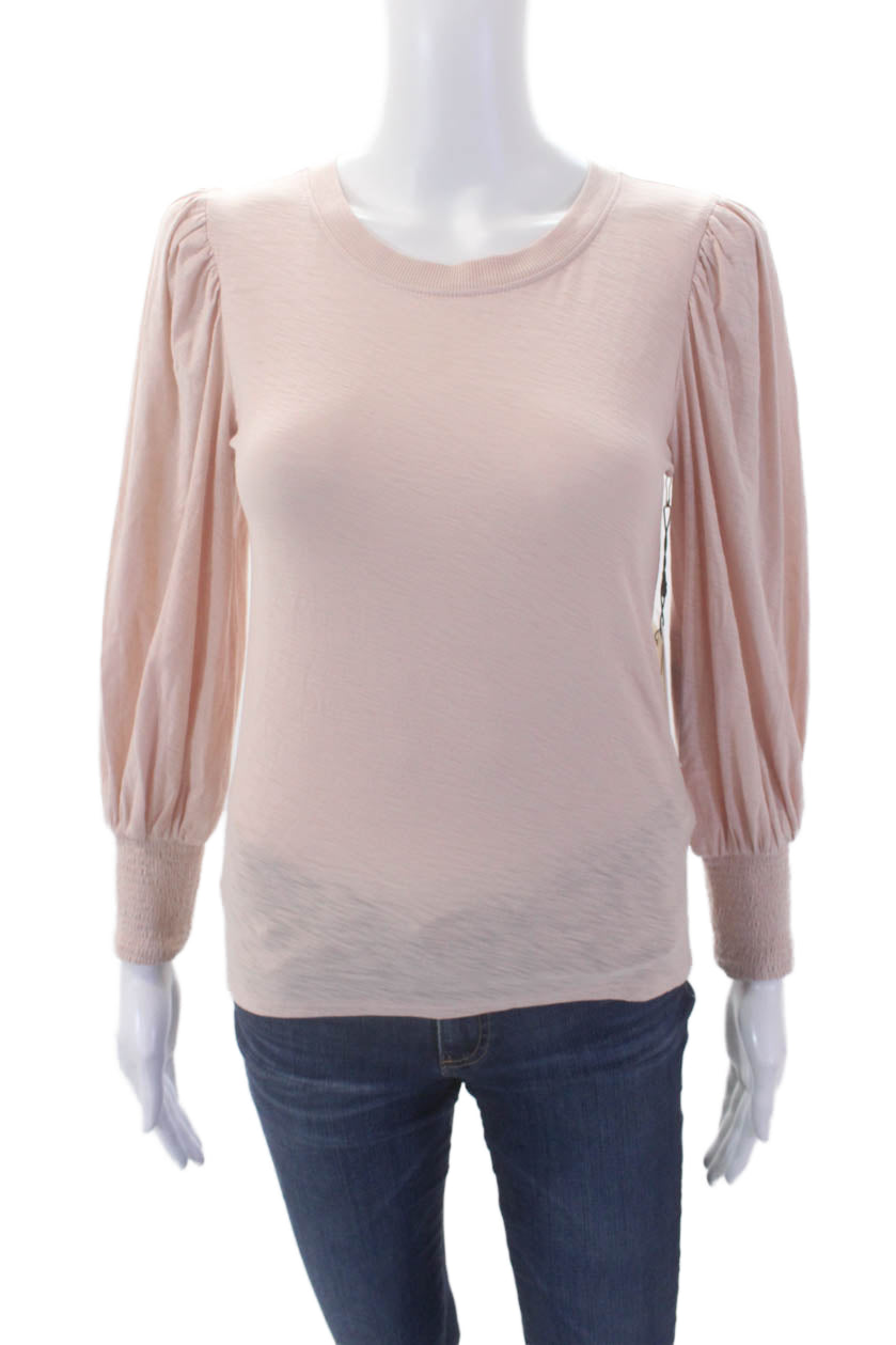Nation LTD Women's Long Sleeves Smocked Basic Blouse Light Pink Size XS