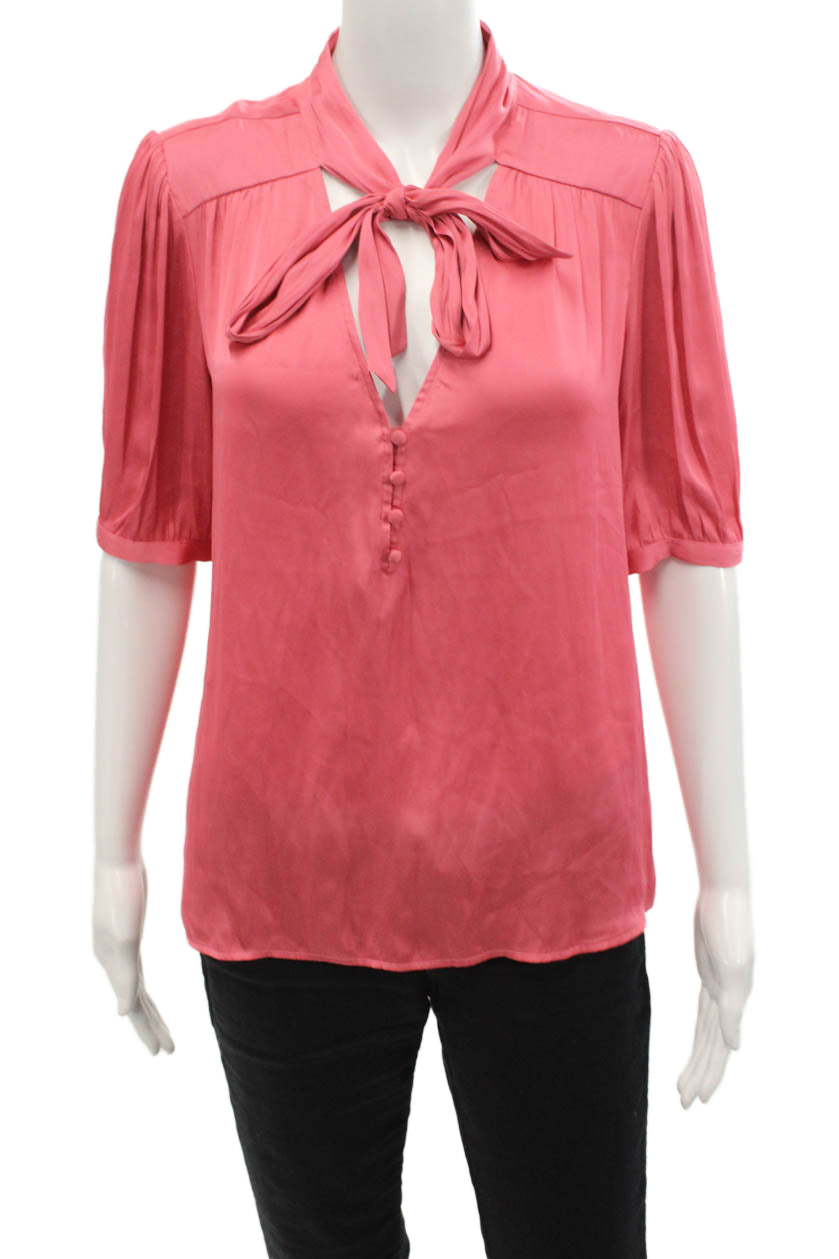 Paige Women Short Sleeve Pink Button Blouse Polyester Blend Classic Size S