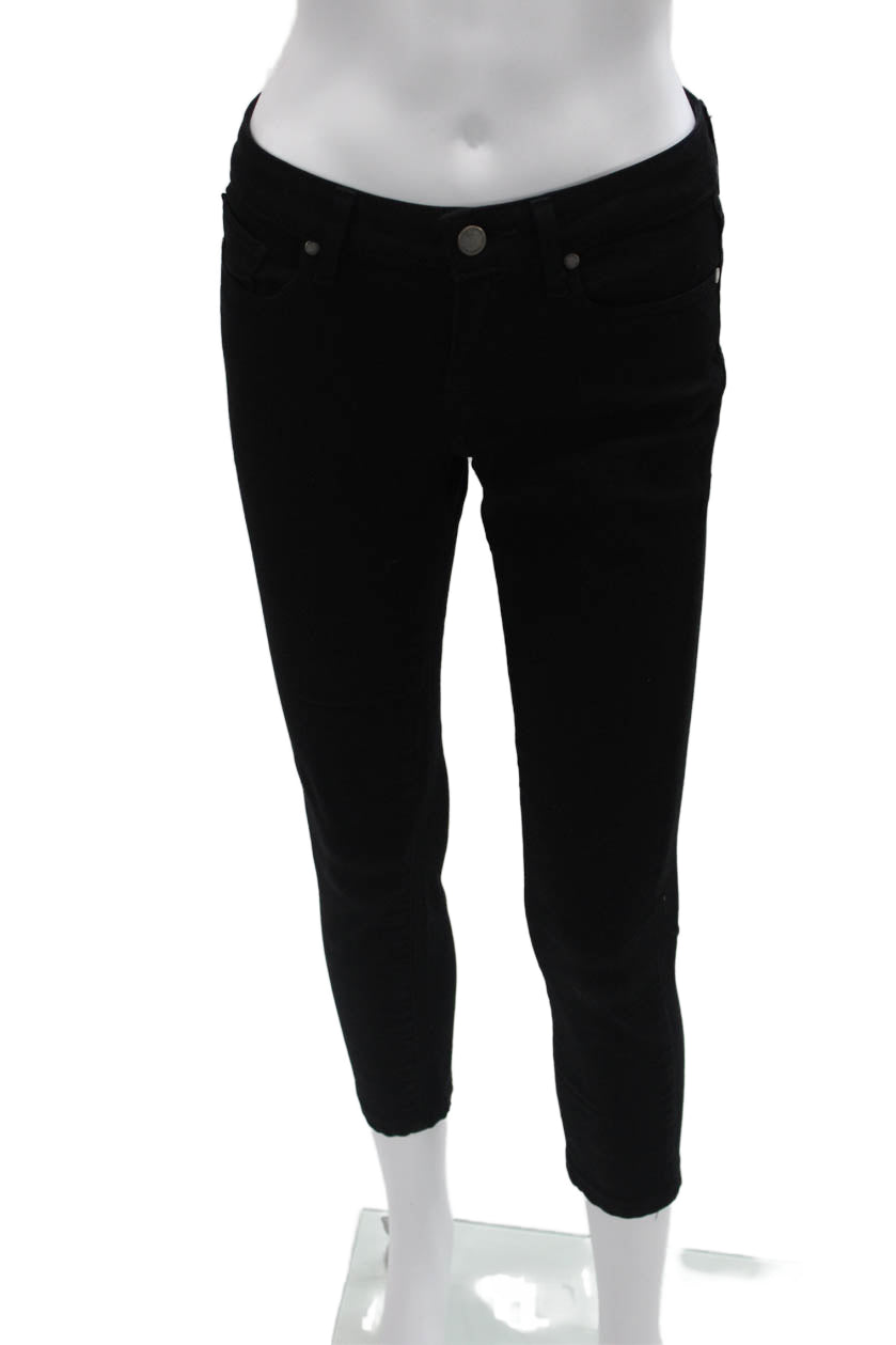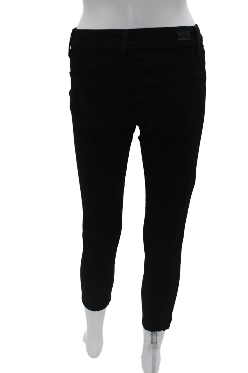 Paige Womens Ankle Skinny Jeans Black Low Rise Button Size 26