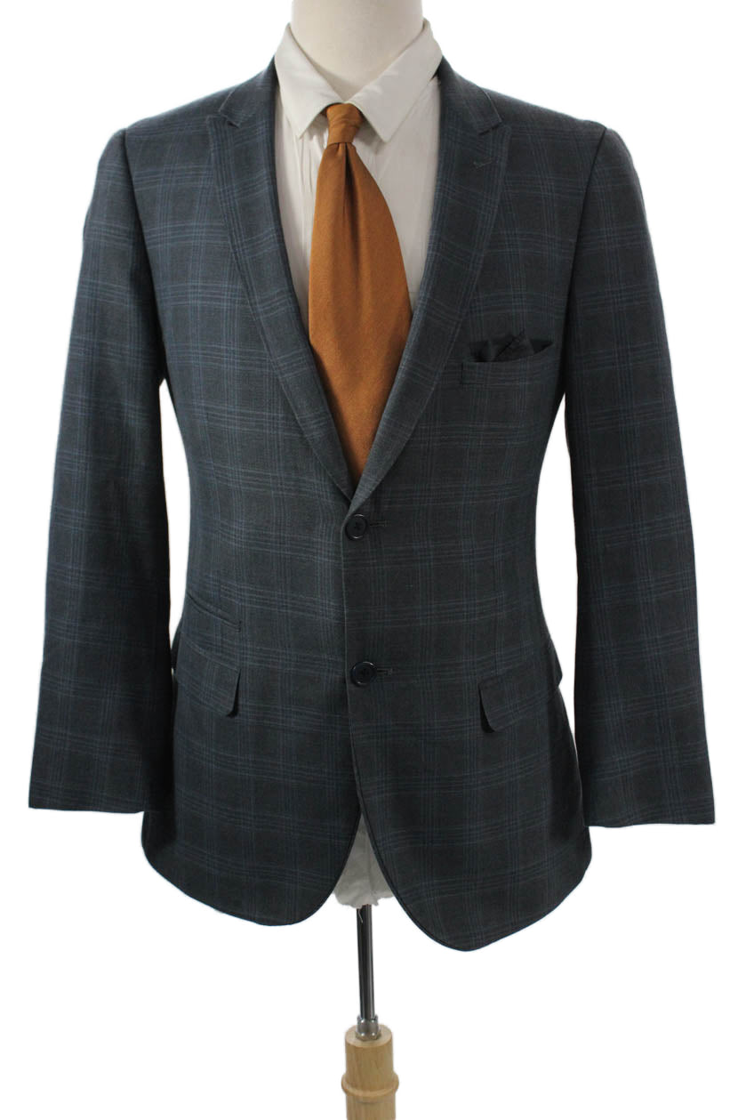 Paisley & Gray Mens Dark Gray Plaid Collared Button Blazer Size 36