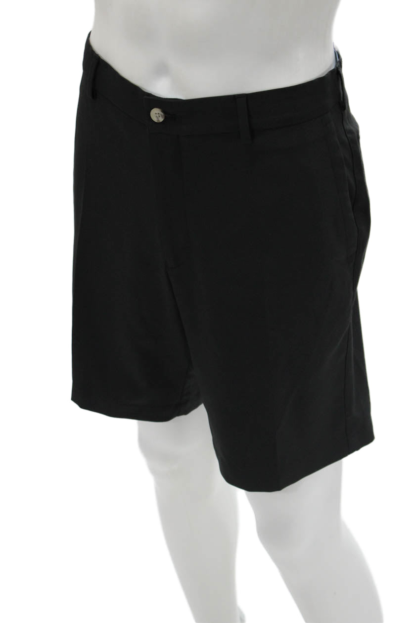 Peter Millar Mens Chino Shorts Black Button Polyester Size 33