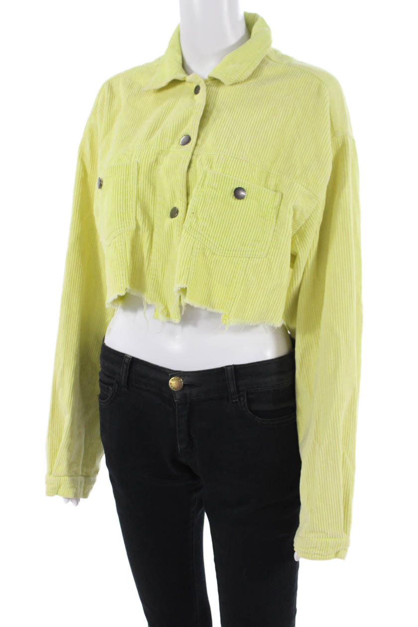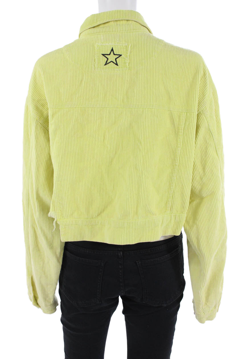 Pol Women Yellow Cotton Long Sleeve Solid Collared Jacket Size L