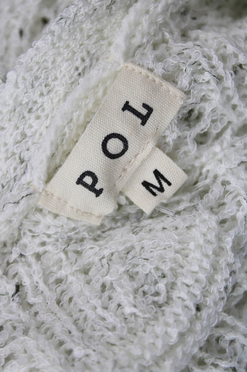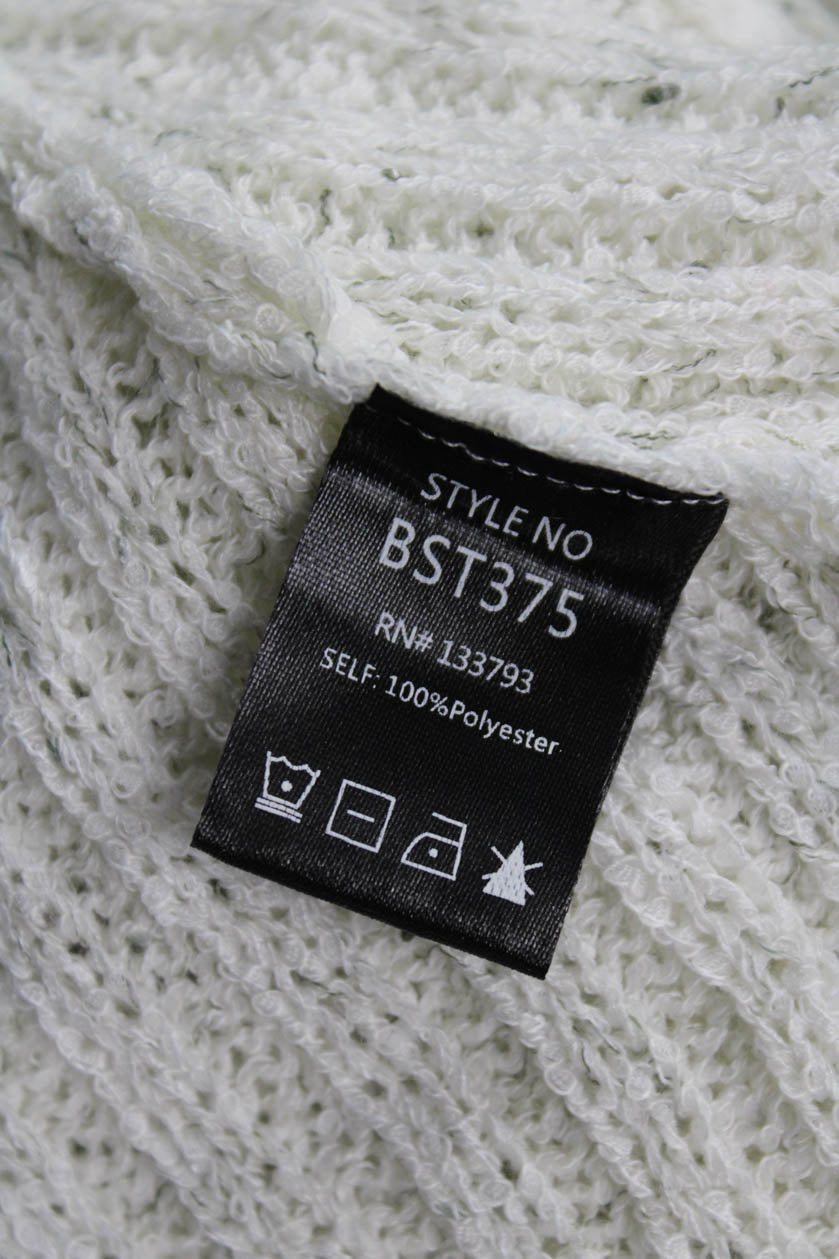 Pol Womens Pullover Sweater White 3/4 Sleeve Tie Neck Boho Polyester Size M
