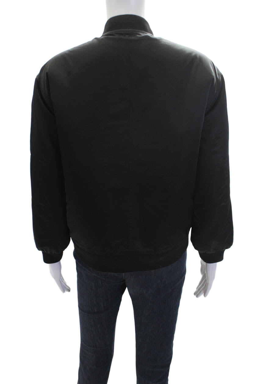 Pologeorgis Womens Full Zip Collar Long Sleeve Bomber Jacket Black Size S