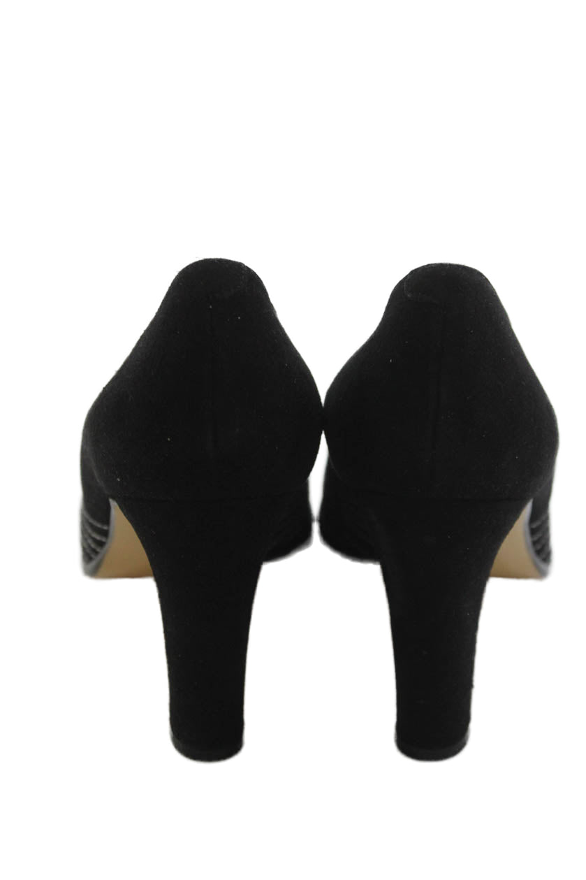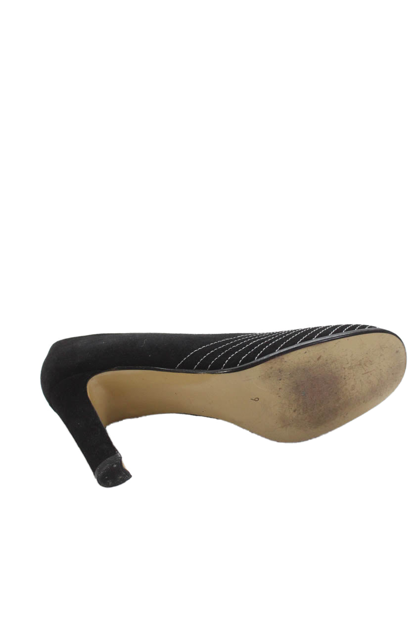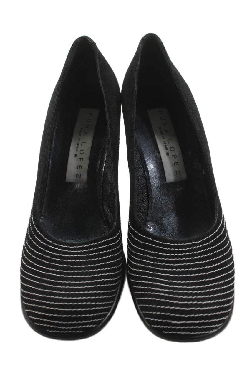 Pura Lopez Womens Striped Round Toe Pump Slip-On High Heels Black Size 9