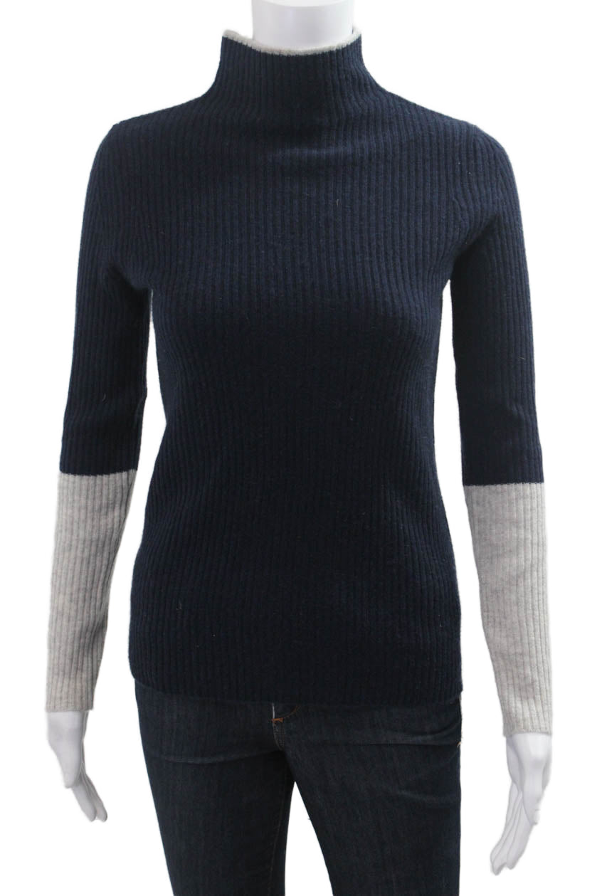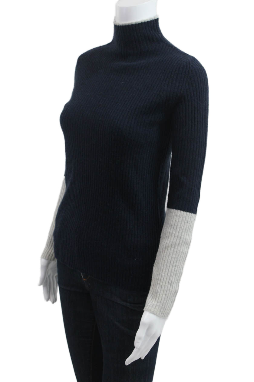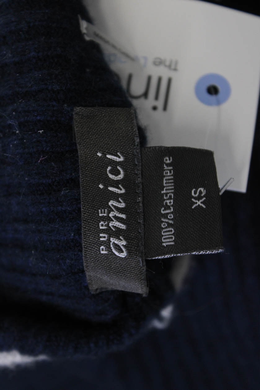 Pure Amici Women Cashmere Mock Neck Pullover Dark Blue Long Sleeve Size S