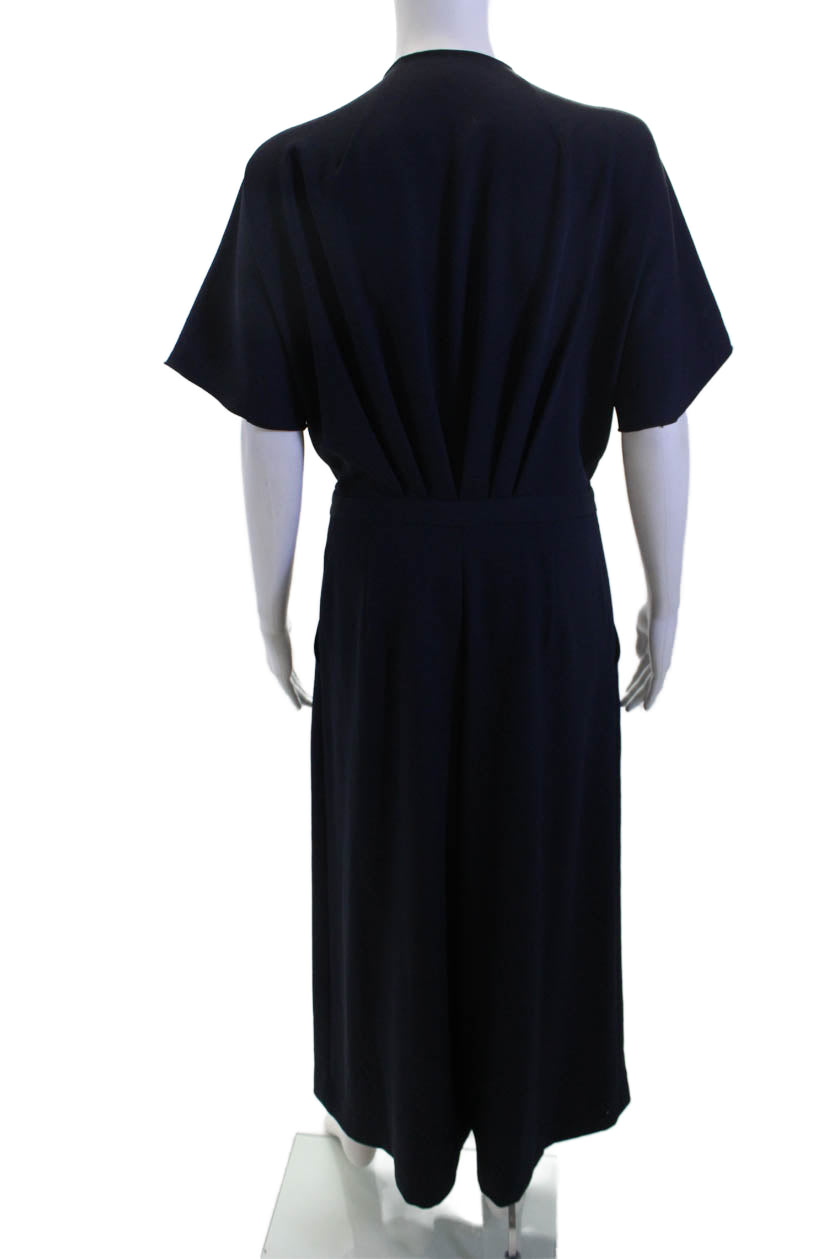 Rachel Comey Women Shirt Dress Dark Blue Mock Neck Short Sleeve Designer Size 8