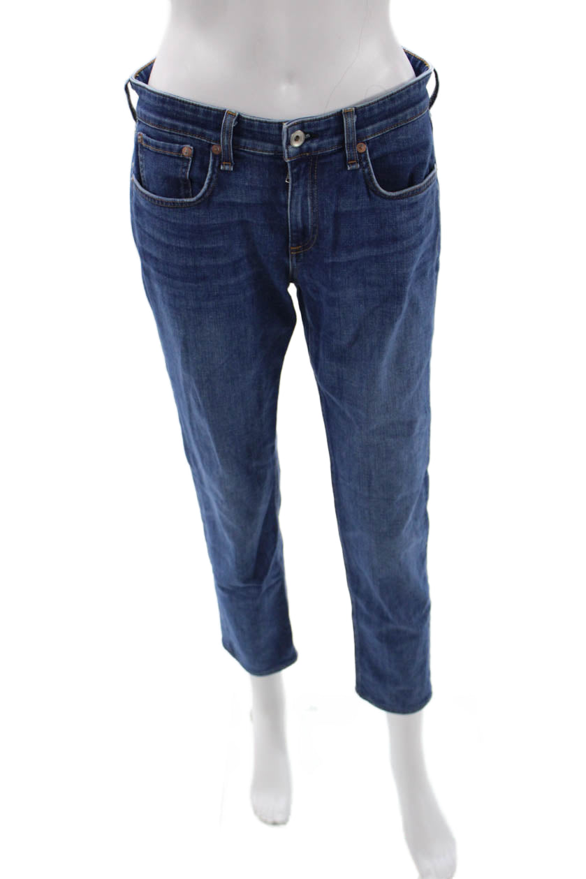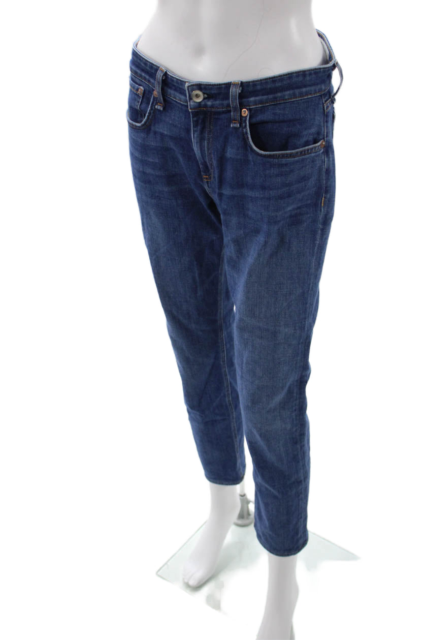 Rag & Bone Women Cropped Ankle Jeans Dark Blue Low Rise Button Size 26