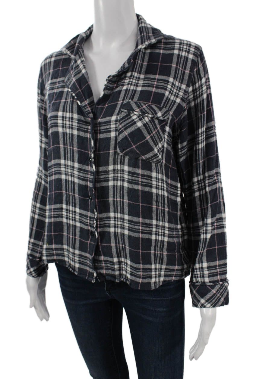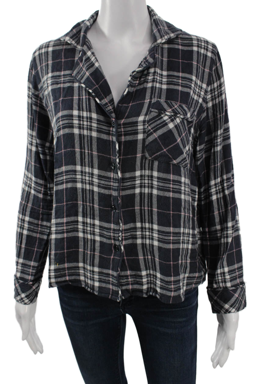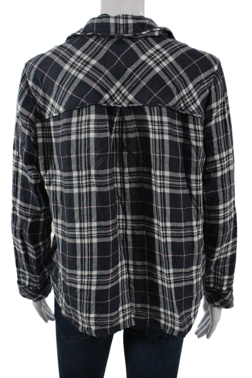 Rails Womens Black Plaid Collared Button-Up Long Sleeve Rayon Basic Size S
