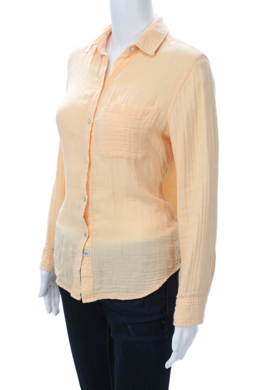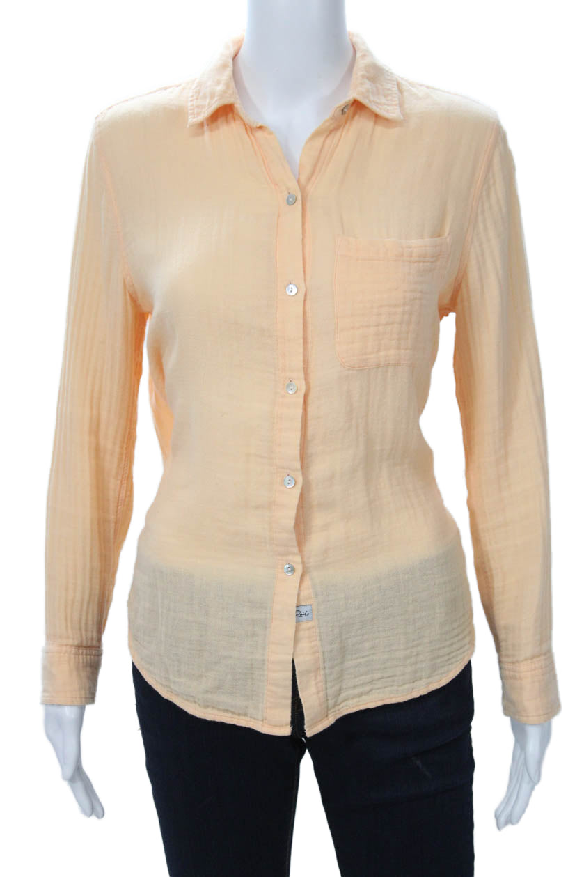 Rails Womens Collared Cotton Long Sleeve Button-Up Orange Petites Size XS