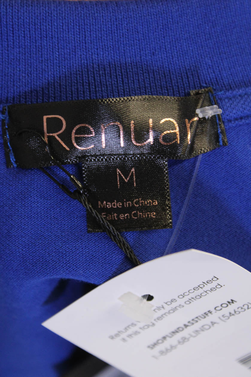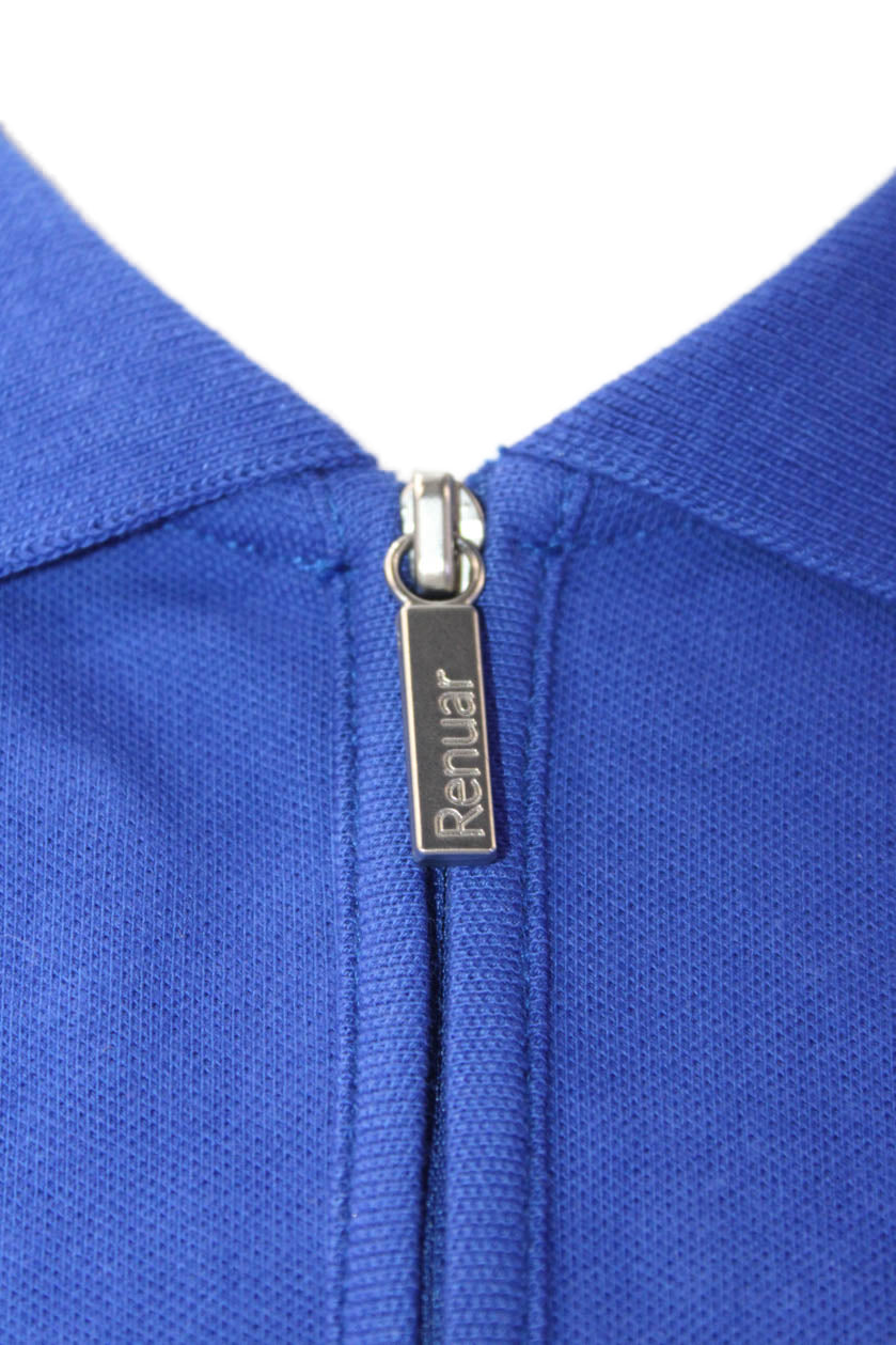 Renuar Women's Short Sleeves Collared Quarter Zip Basic Polo Shirt Blue Size M