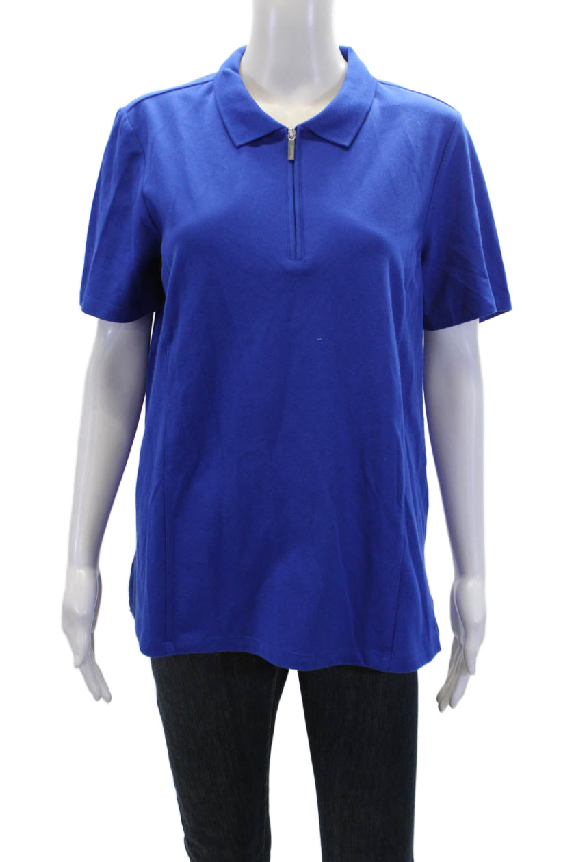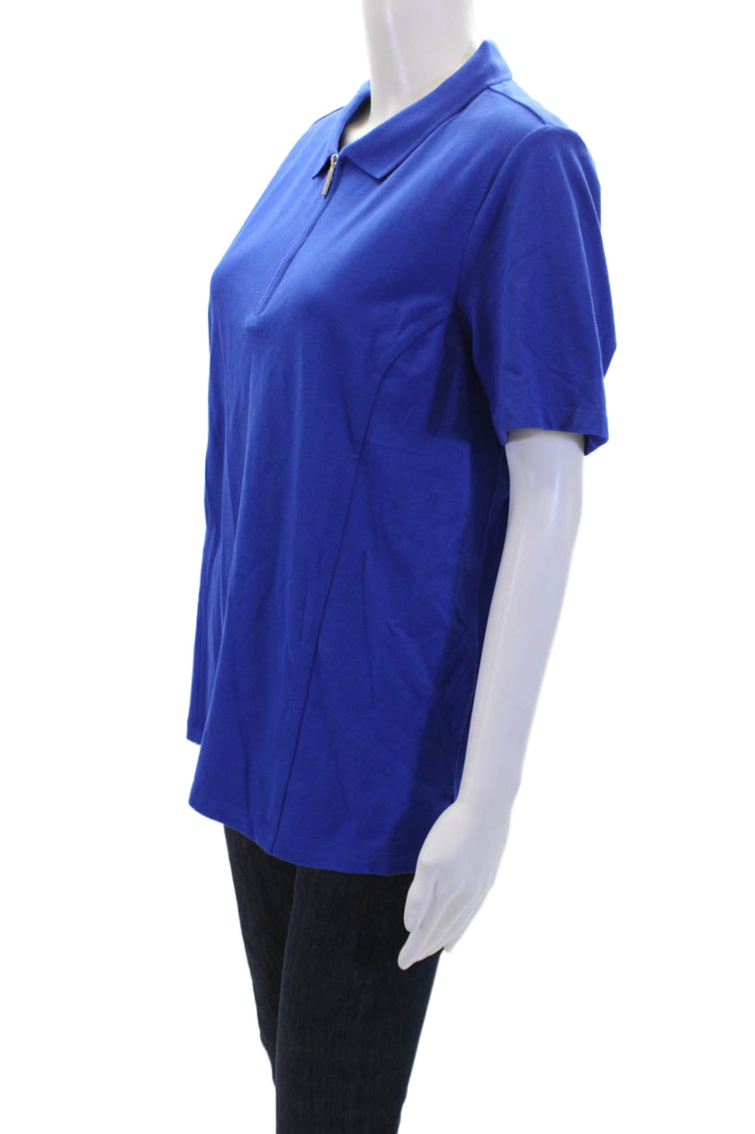 Renuar Women's Short Sleeves Quarter Zip Basic Polo T-Shirt Blue Size L