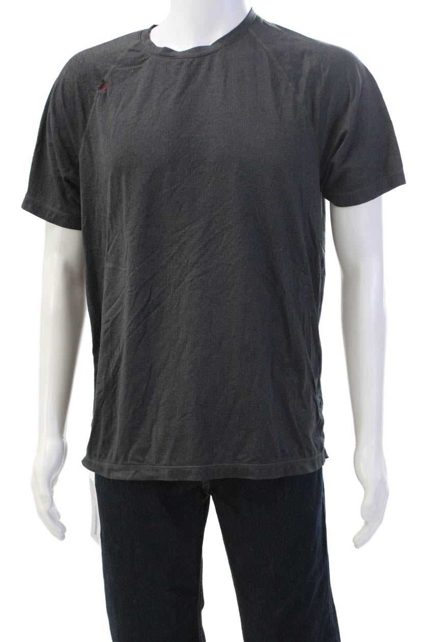 Rhone Mens Dark Gray T-Shirt Short Sleeve Crew Neck Solid Designer Size L
