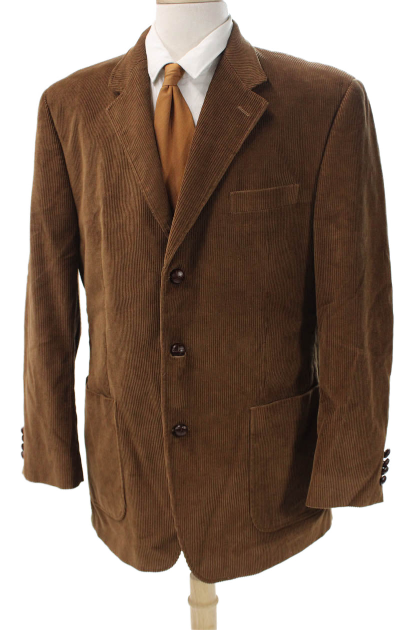 Roundtree & Yorke Mens Classic Brown Cotton Sport Coat Collared Button Size 42