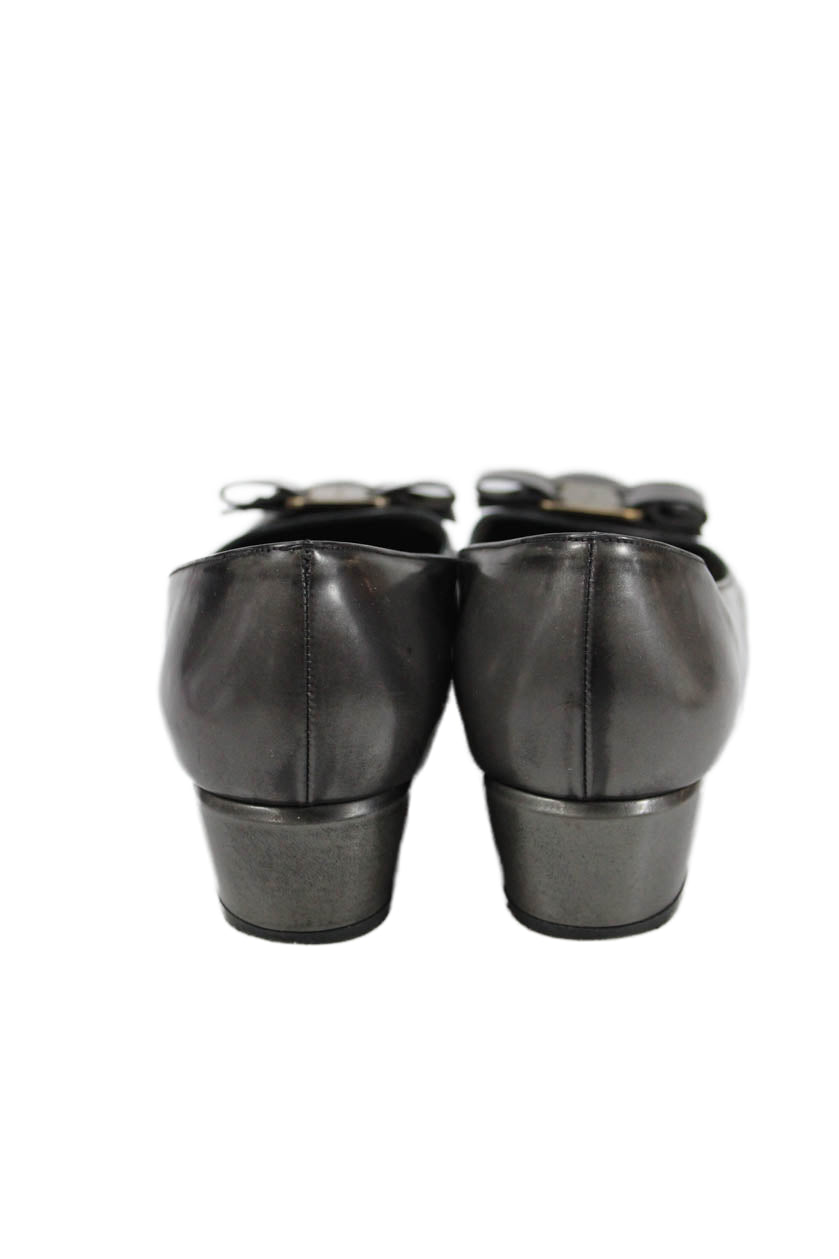 Salvatore Ferragamo Women's Leather Bow Pumps Shoes Gray Size 9.5