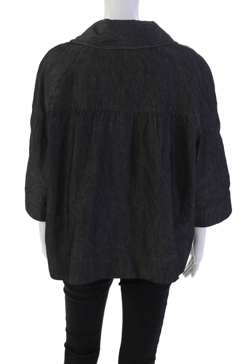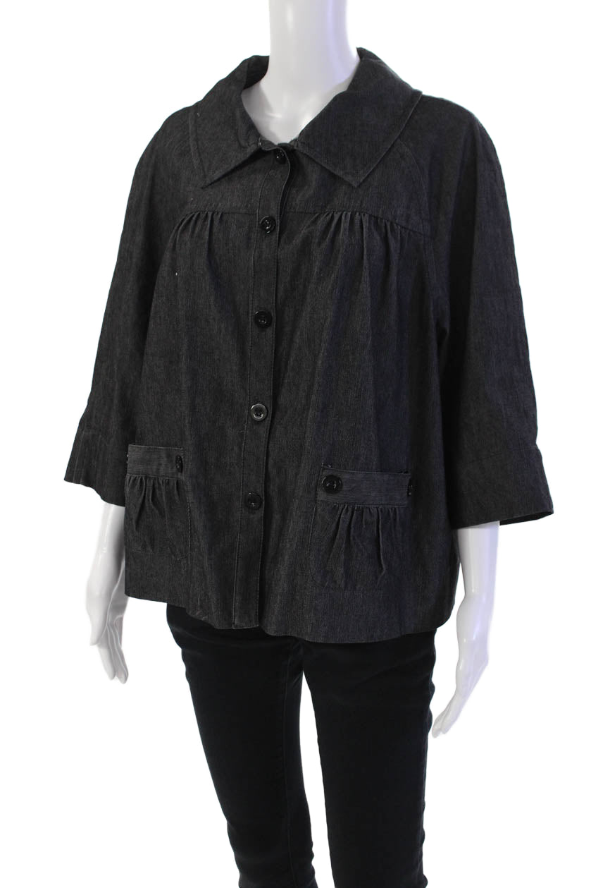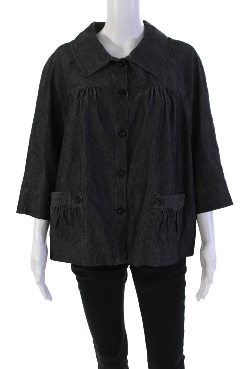 Fendi Womens Button Front Collared Velvet Logo Jean Jacket Black Denim Size 2