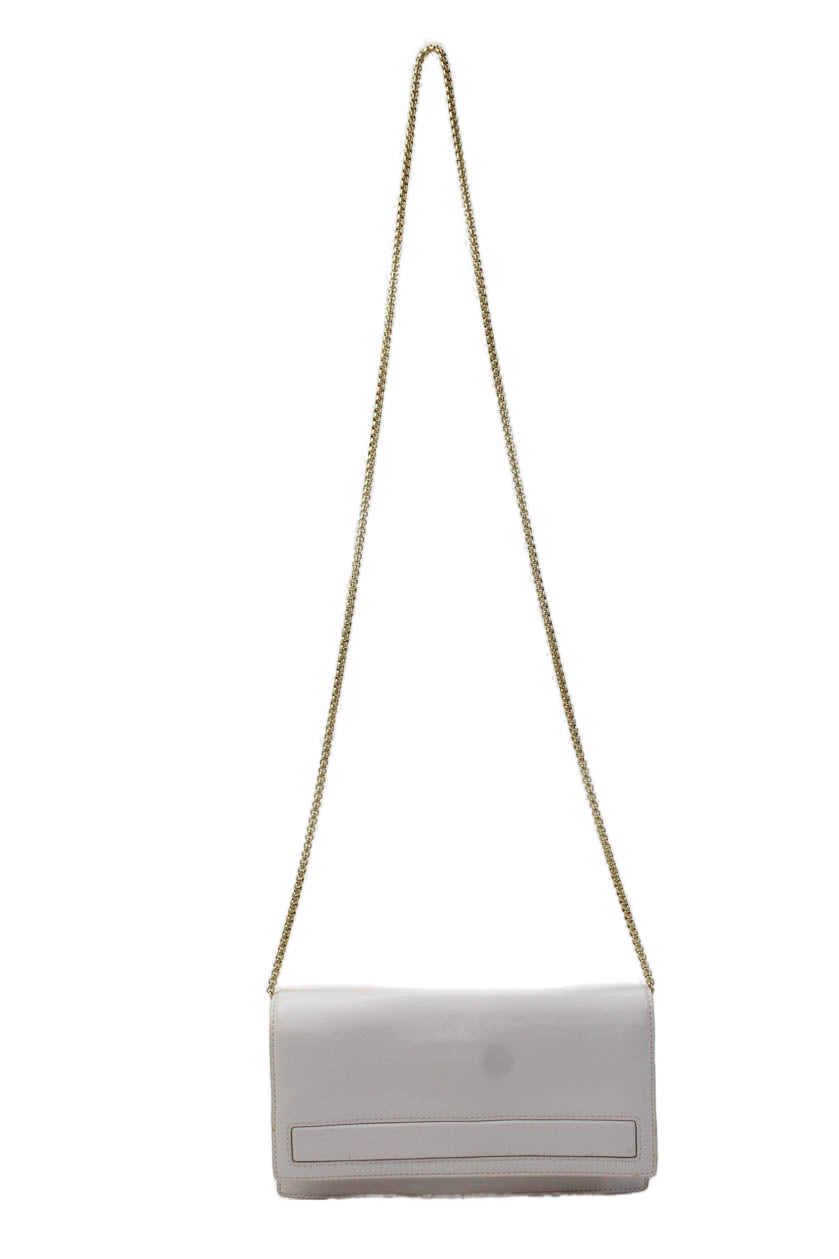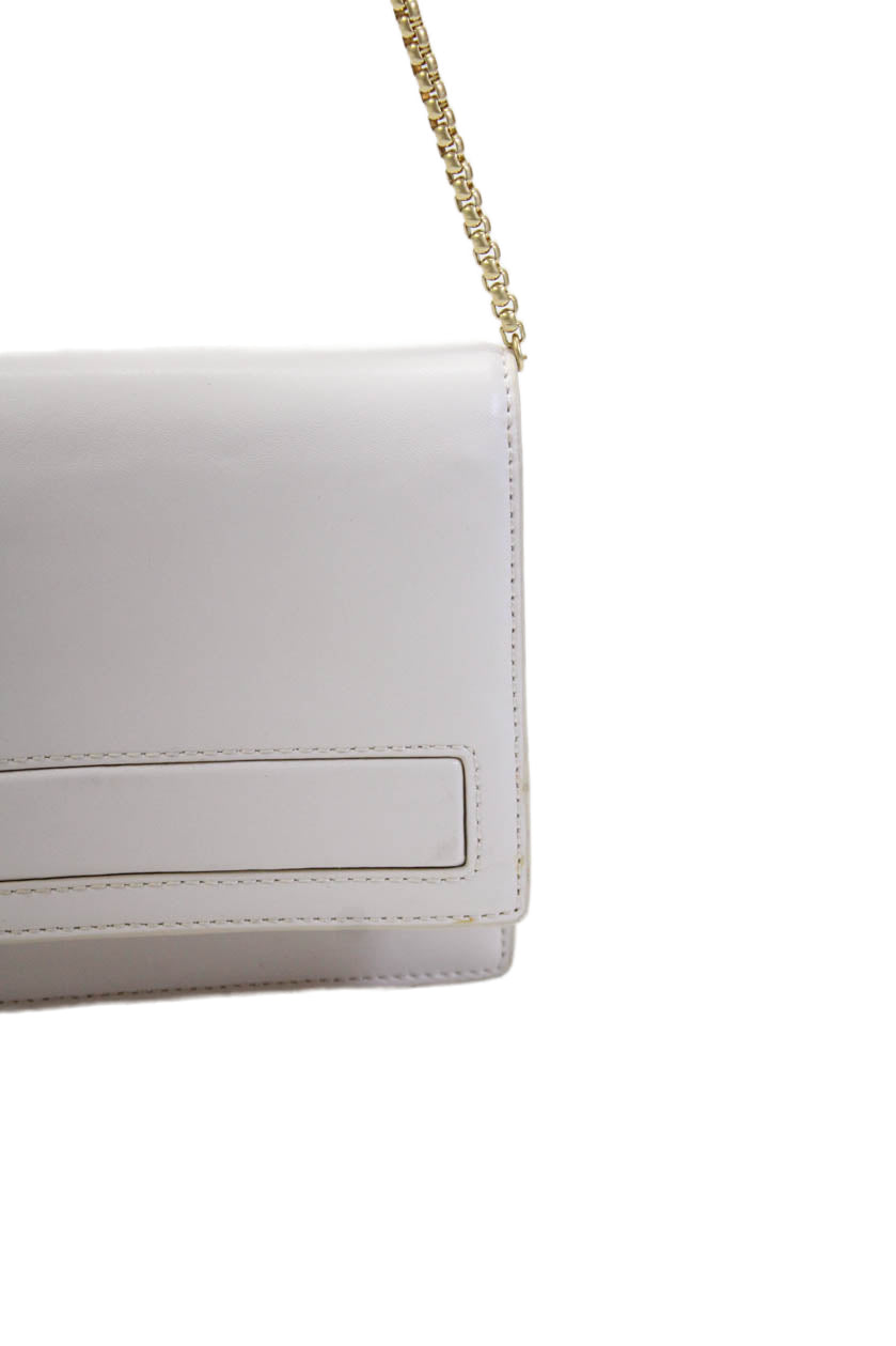 Sarah White Womens Leather Chain Strap Snap Closure Shoulder Bag Puse White
