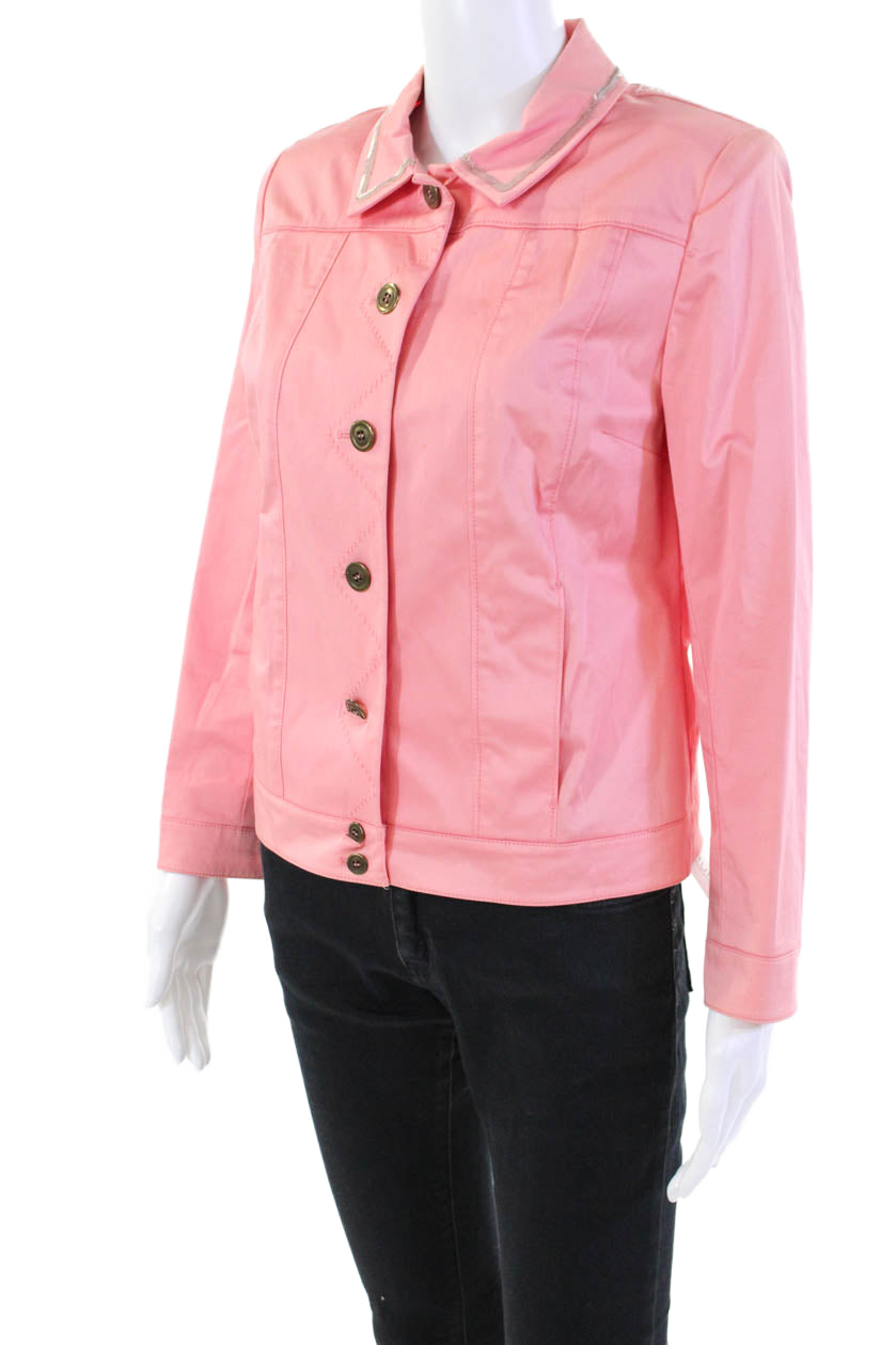 Sigrid Olsen Womens Button Front Collared Light Jacket Pink Cotton Size 6