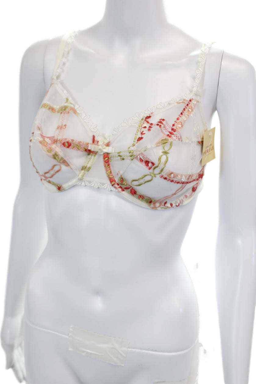 Simone Perele Womens Scalloped Lace Detail Sheer Underwire Bra White Size 34E
