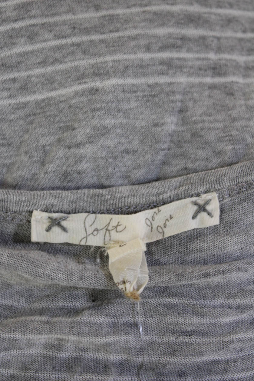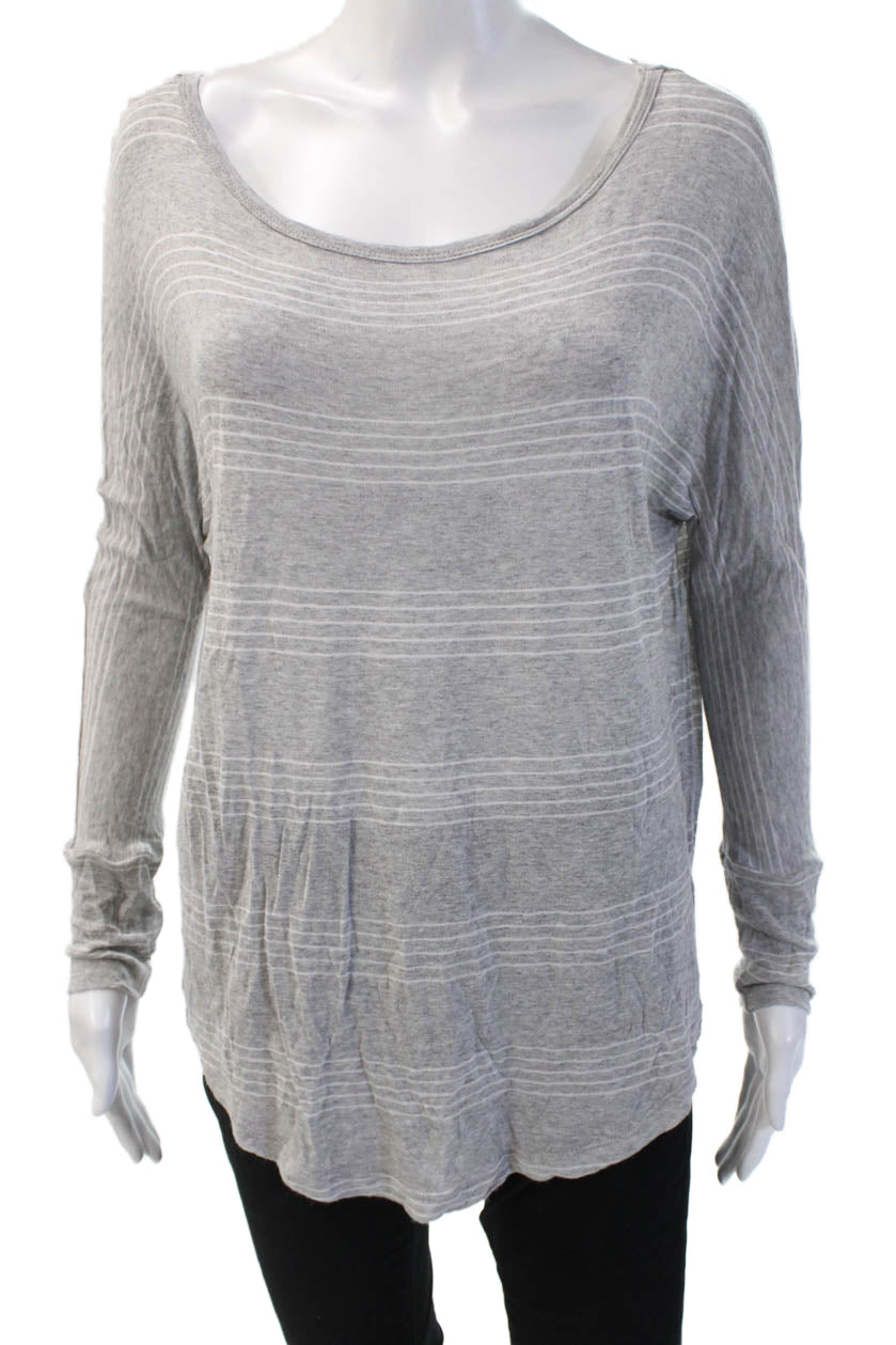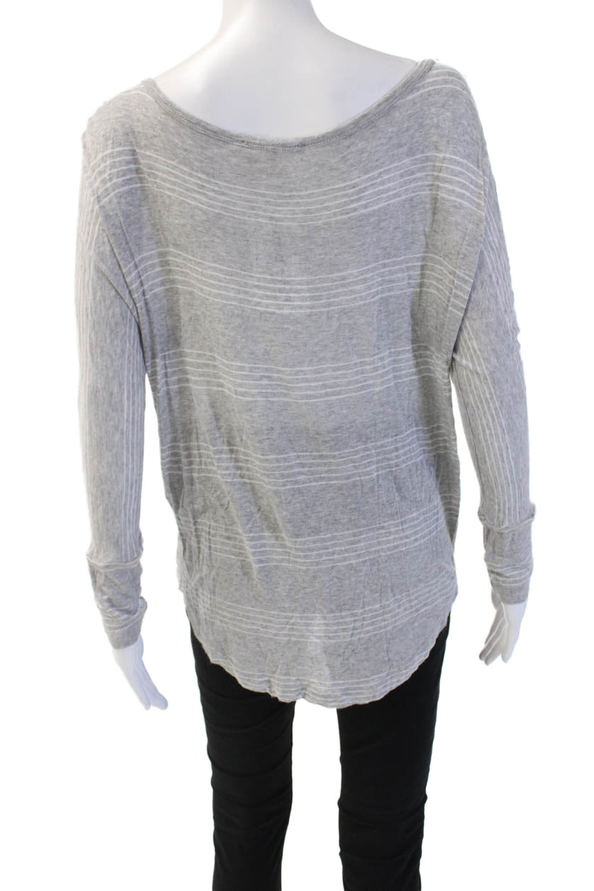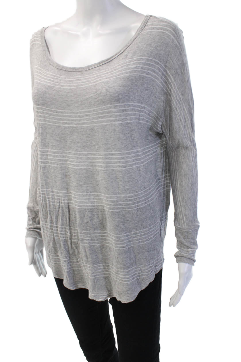 Soft Joie Womens Basic Striped Gray Rayon Long Sleeve Round Neck Top Size L