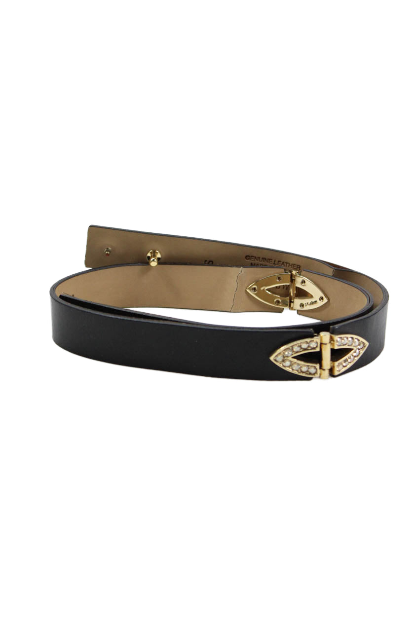 St. John Women's Leather Gold Embellish Belt Black Size S