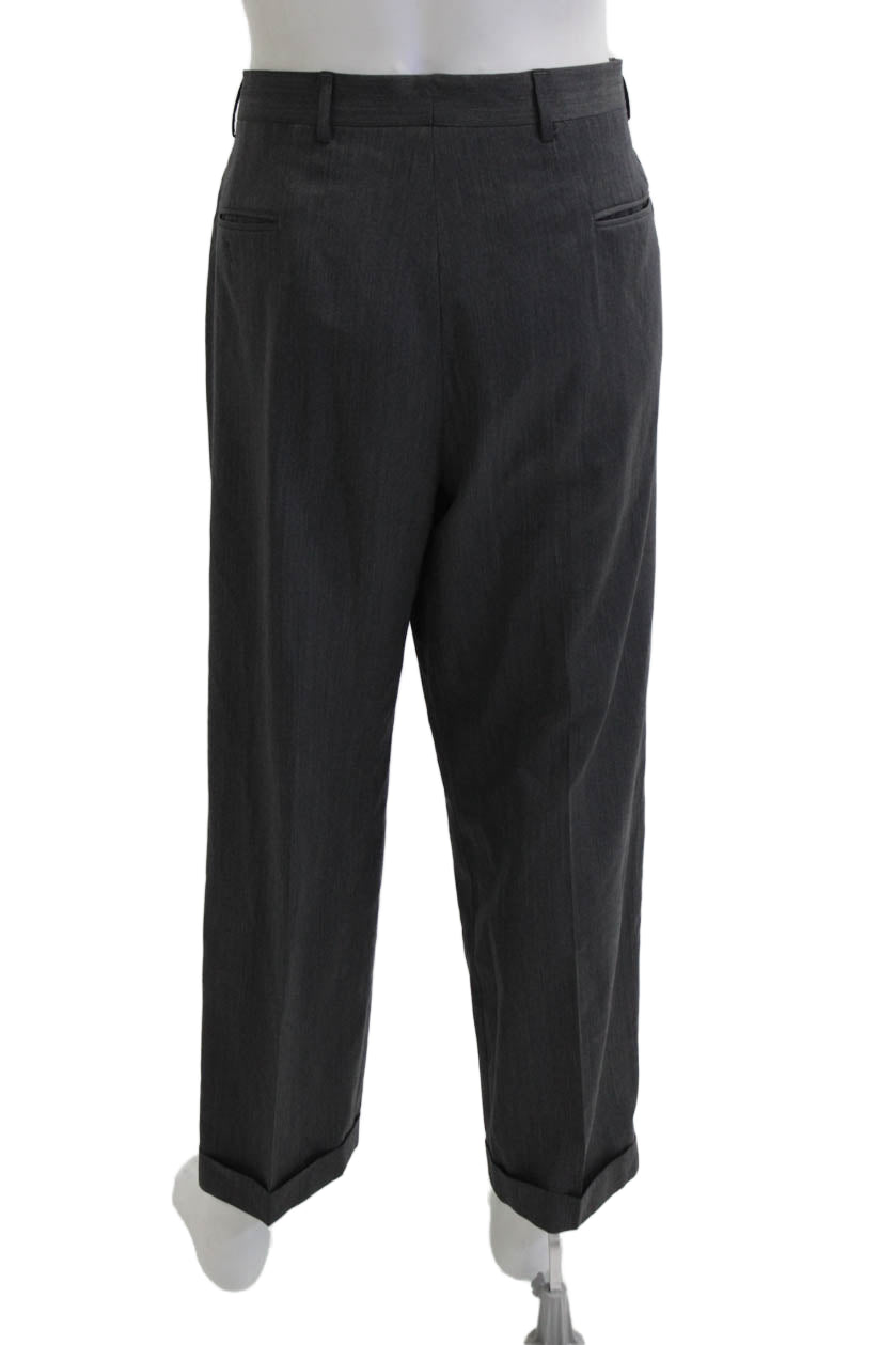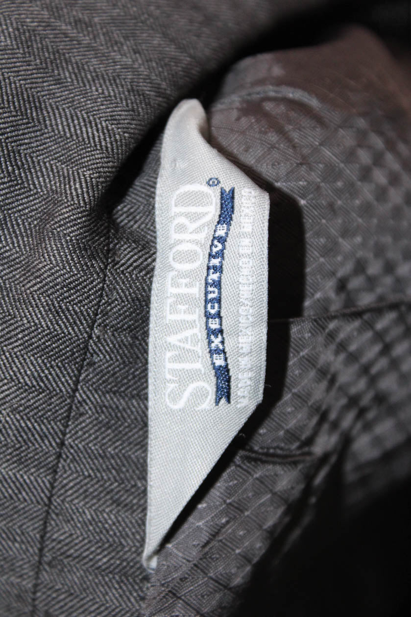 Stafford Mens 2 Piece Herringbone Dark Gray 100% Wool Suit Size 42