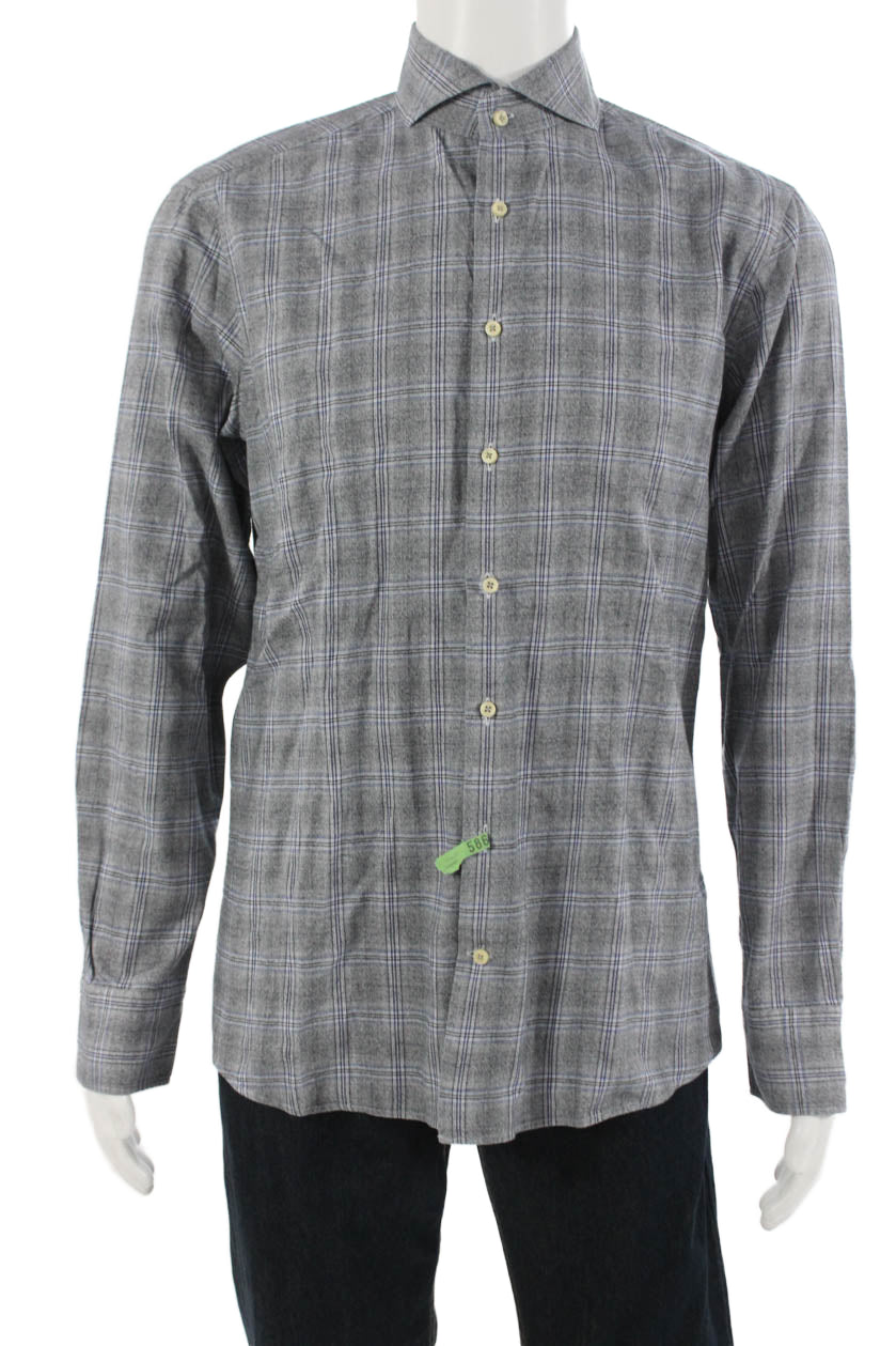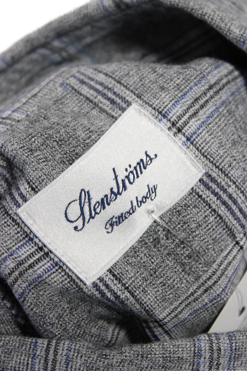 Stenstroms Womens Cotton Collared Long Sleeve Button Down Shirt Gray Size 39