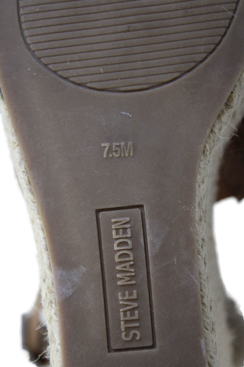 Steve Madden Womens Leather Espadrille Wedge Sandals Brown Size 7.5 Medium