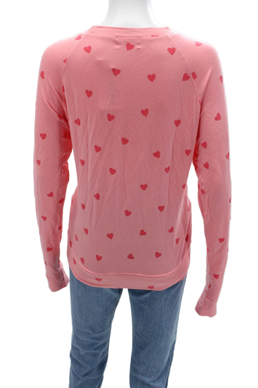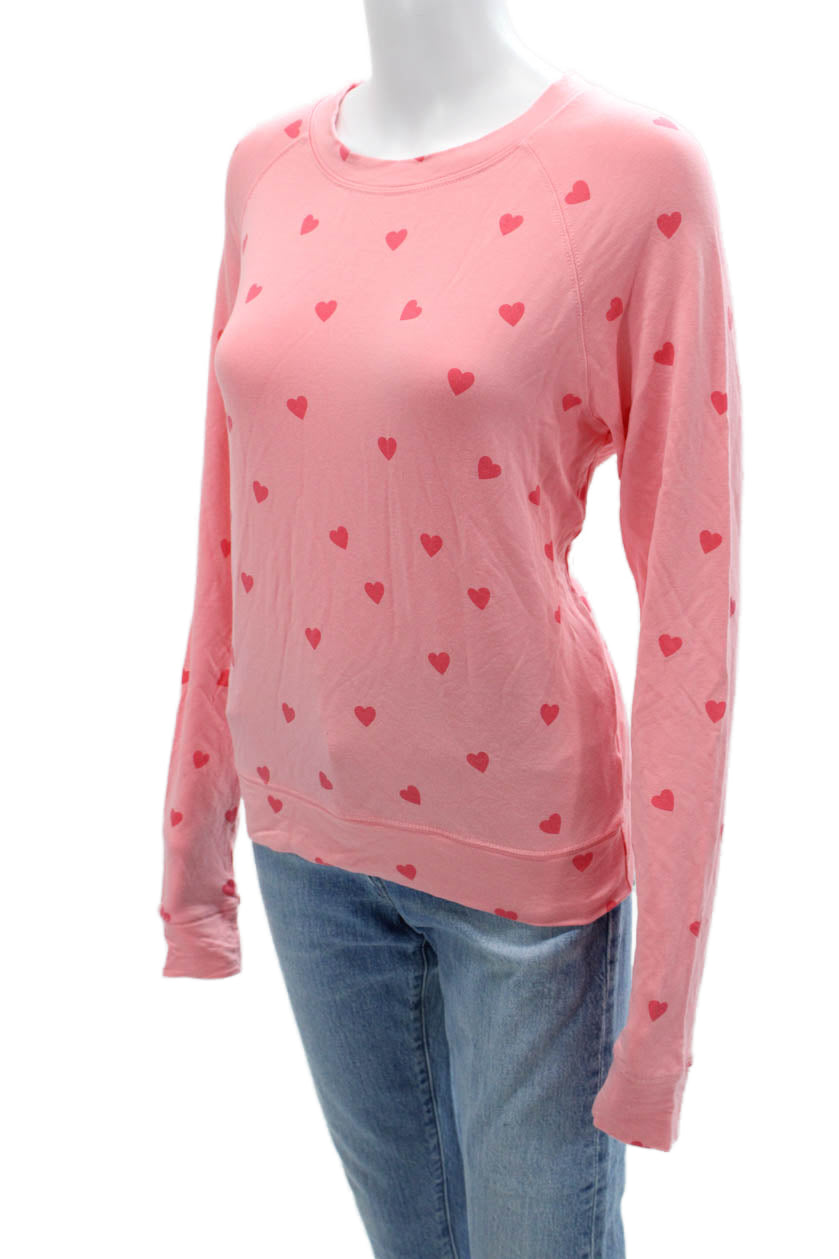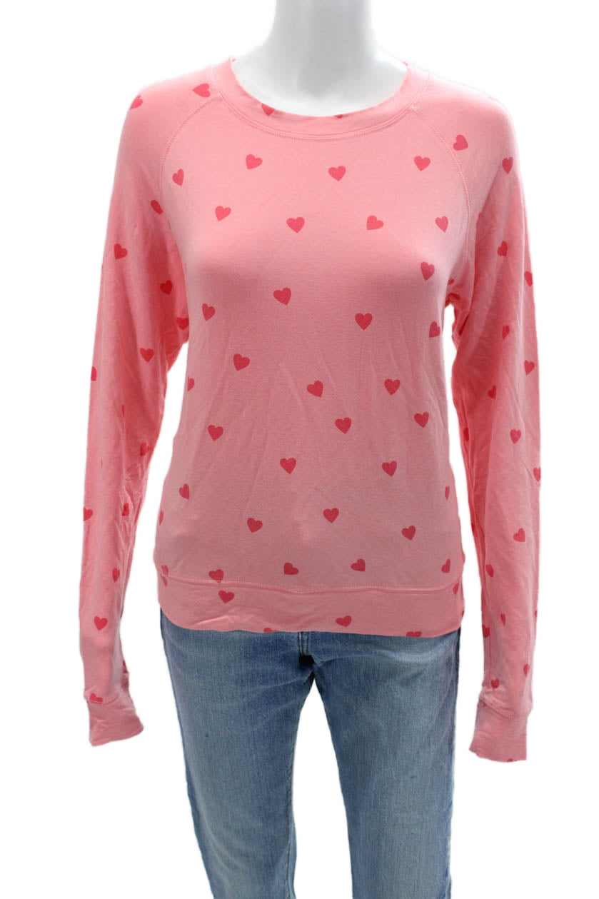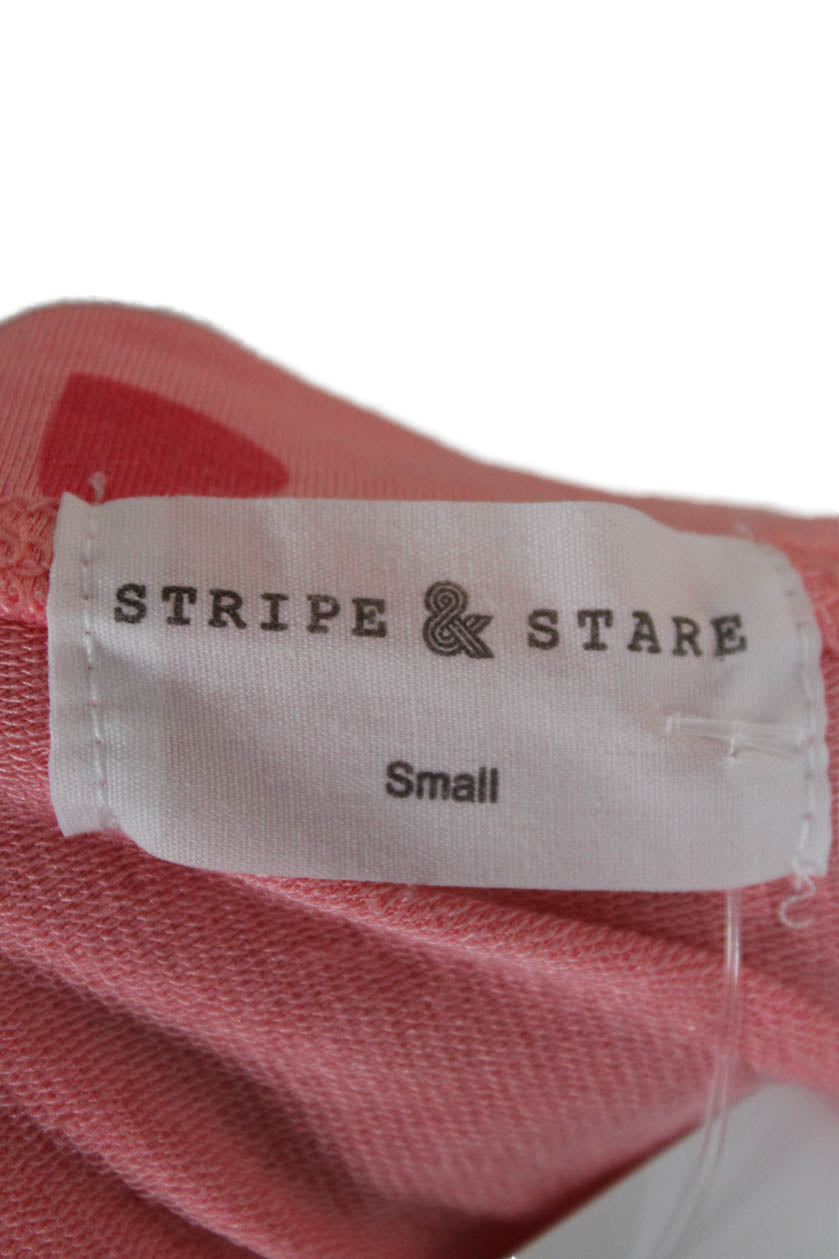 Stripe & Stare Womens Pullover Sweatshirt Pink Heart Crew Long Sleeve Size S