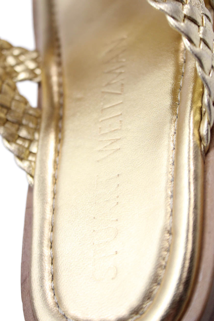 Stuart Weitzman Womens Metallic Leather Slide On Sandals Gold Size 6.5