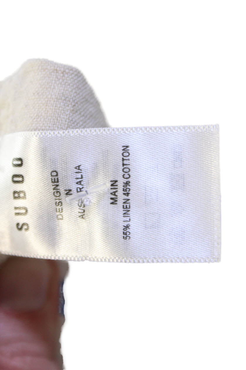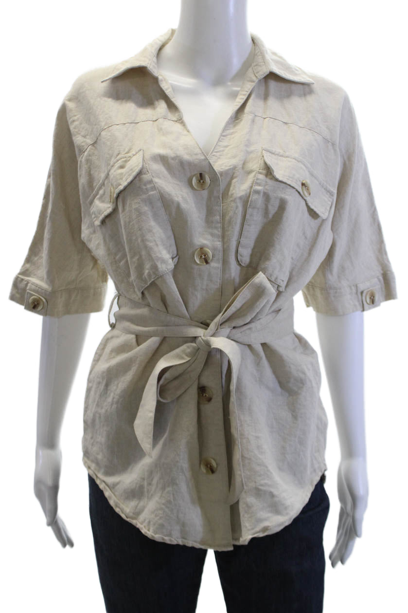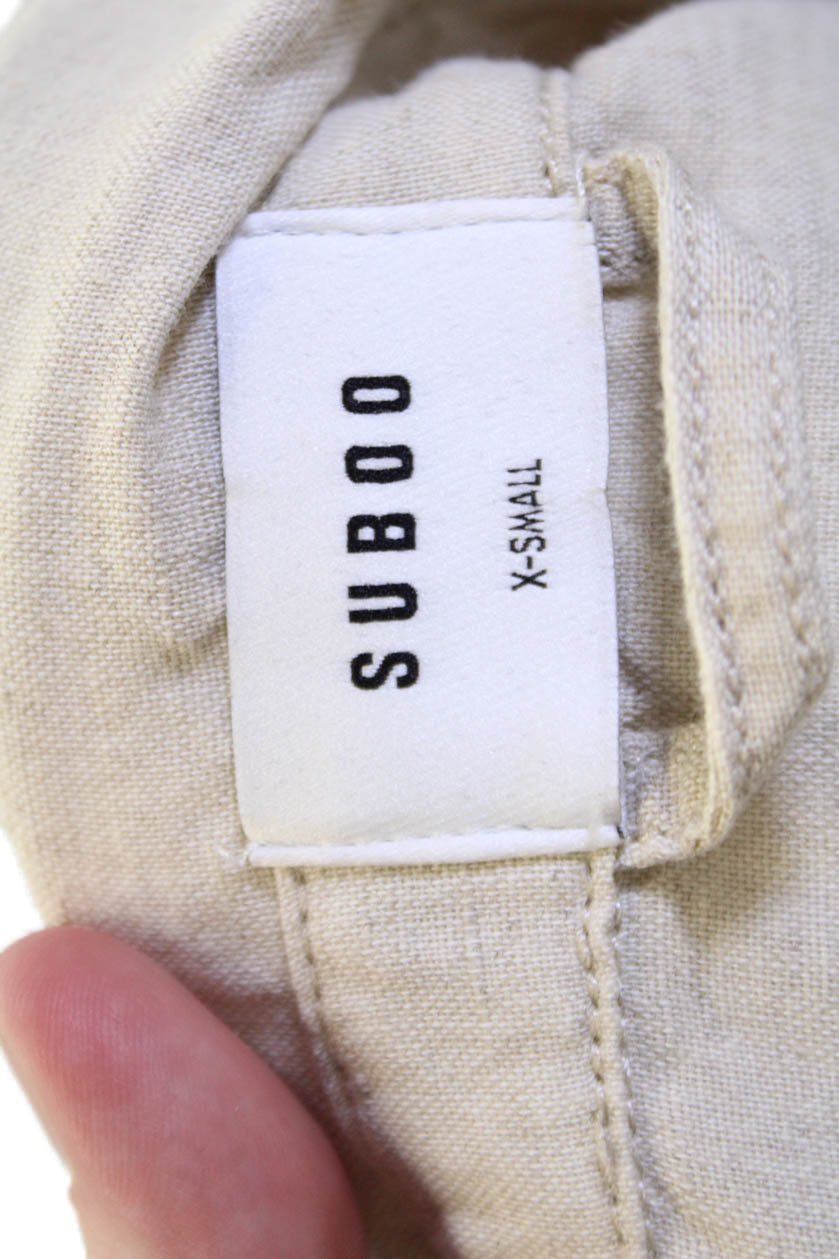 Suboo Womens Linen Button Down Short Sleeves Shirt Beige Size Extra Small