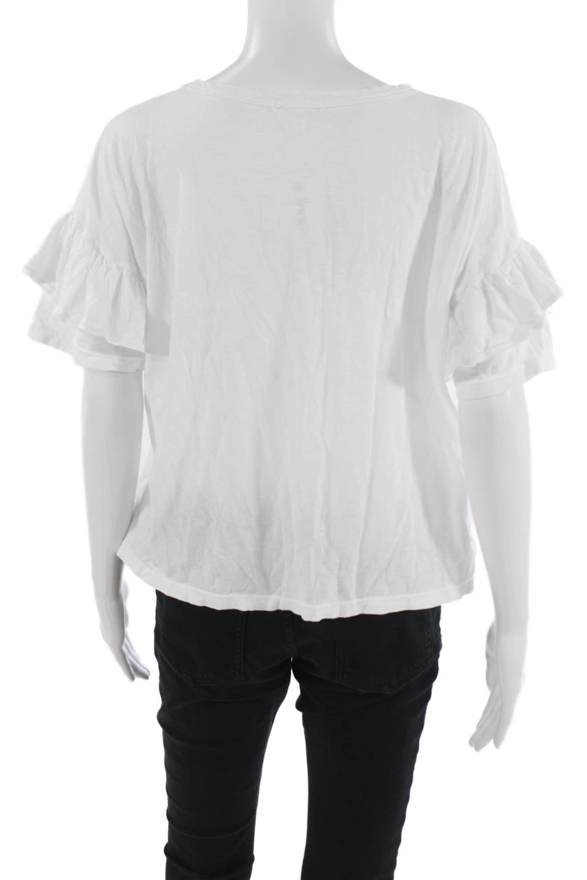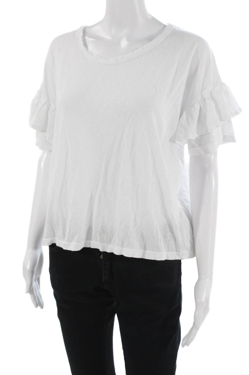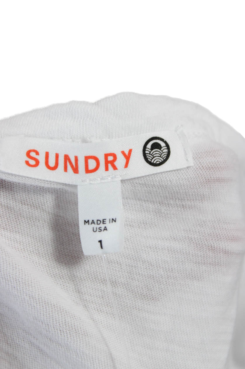 Sundry Womens White Pima Cotton Short Sleeve Round Neck T-Shirt Basic Size 1