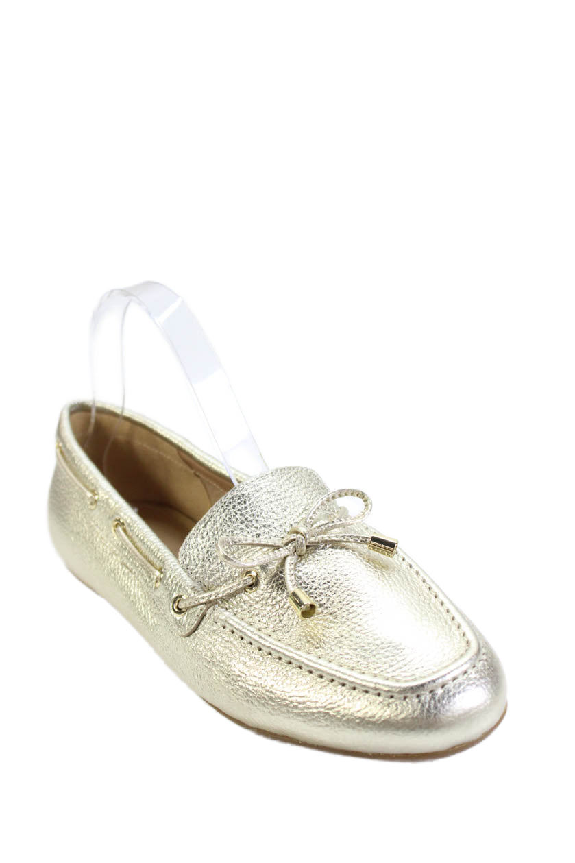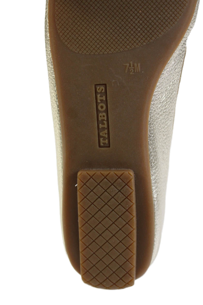 Talbots Womens Leather Bow Accent Square Toe Flats Gold Size 7.5