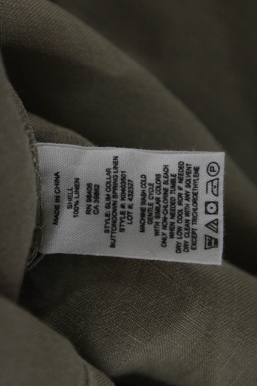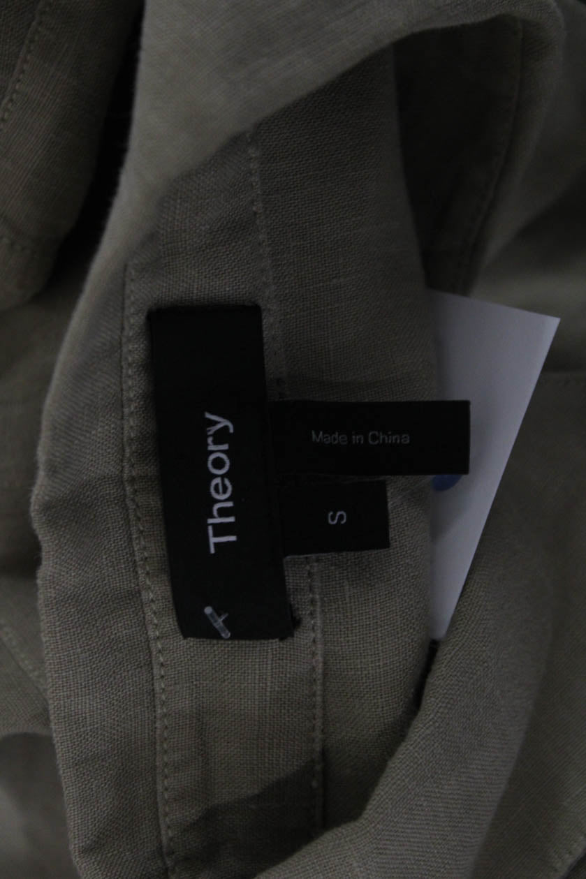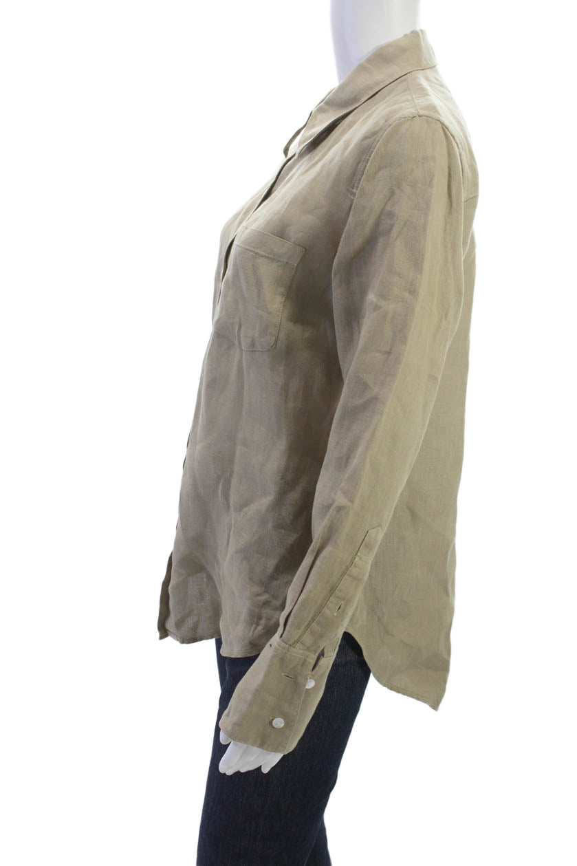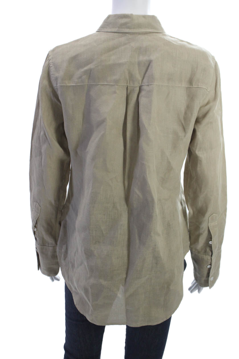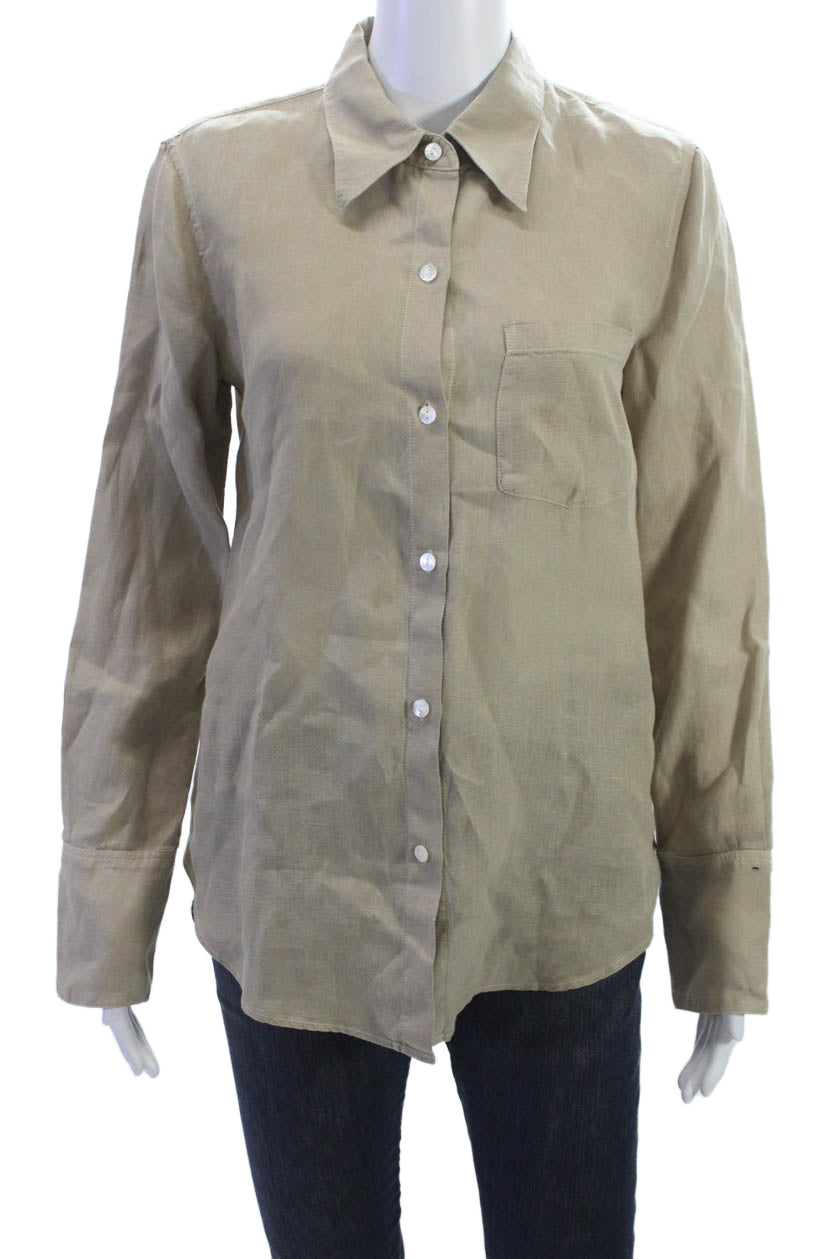 Theory Women Basic Linen Collared Button Up Long Sleeve Beige Size S