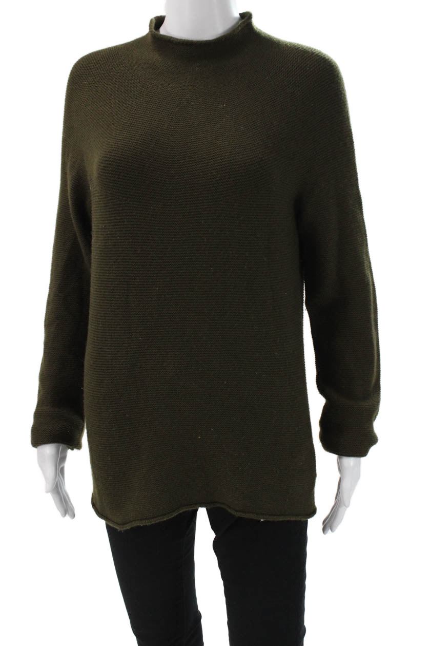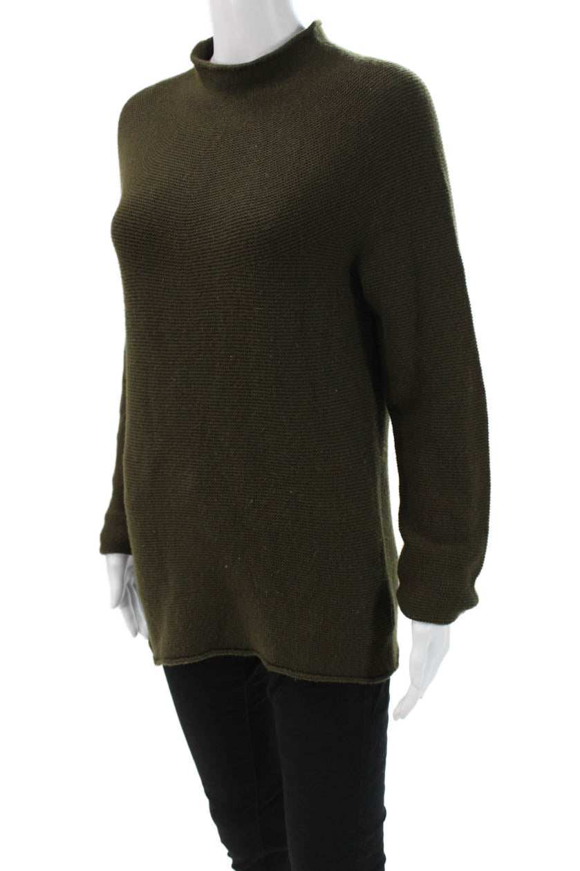 Theory Womens Cashmere Mock Neck Pullover Sweater Green Long Sleeve Size M