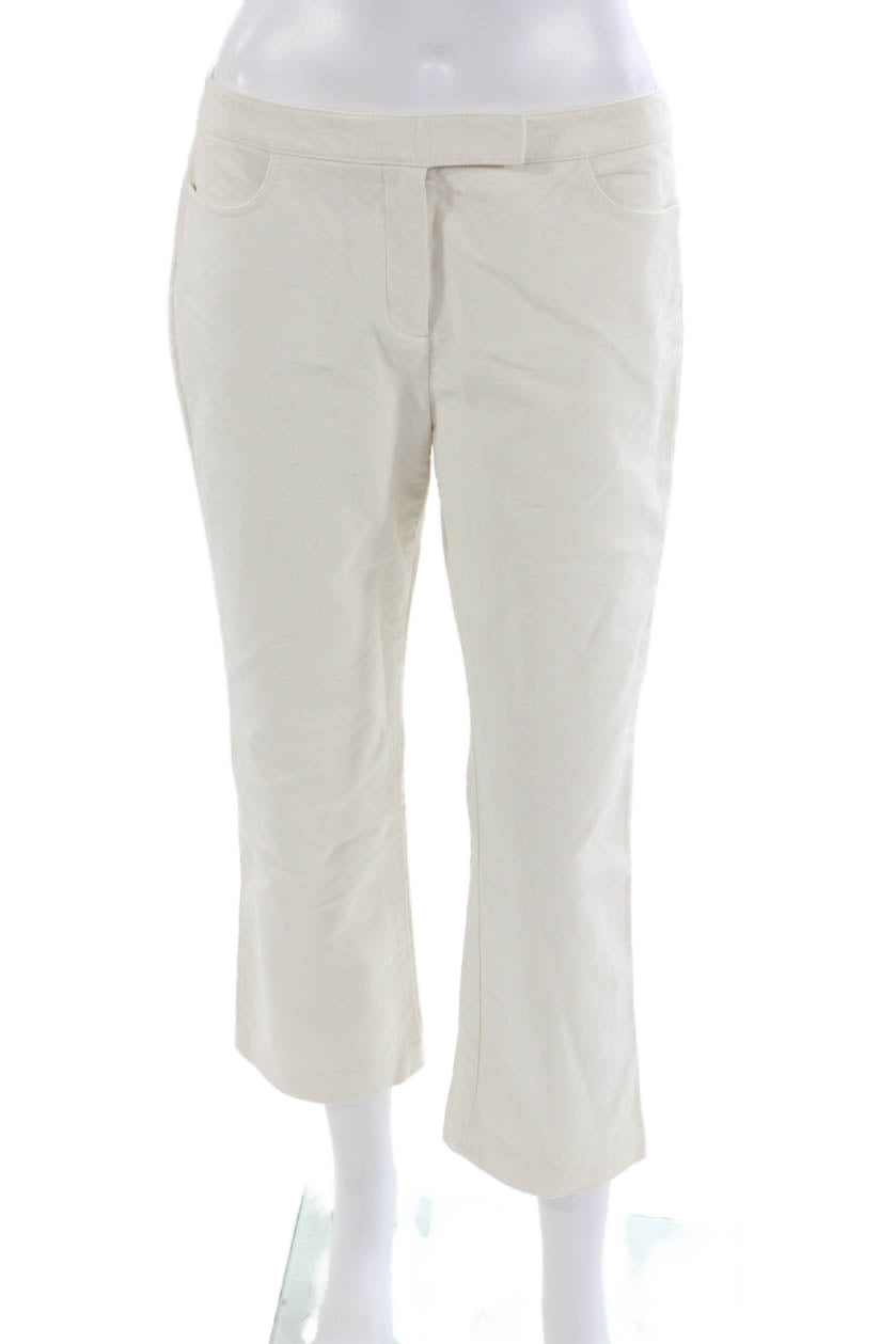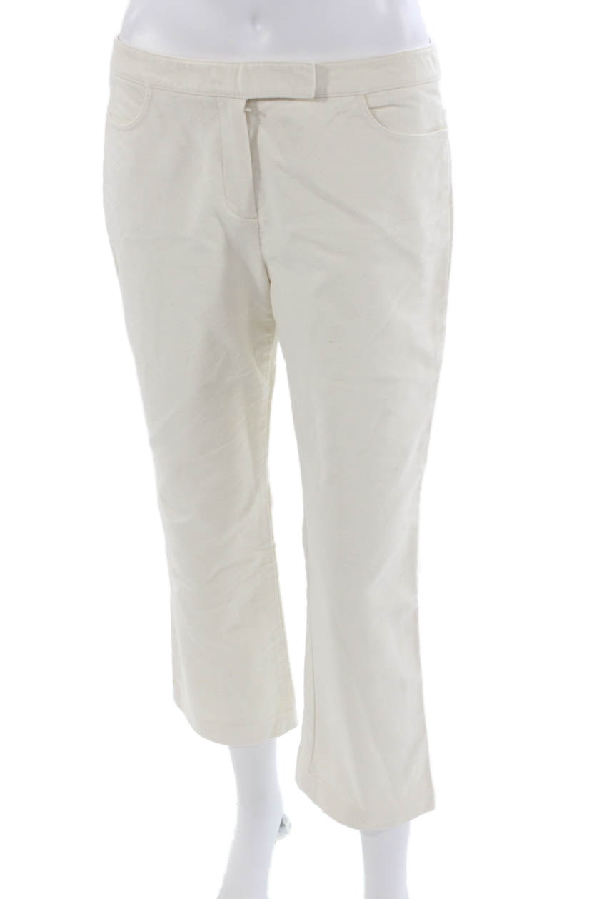 Theory Womens Cropped White Pants Button Fly Cotton Spandex Size 4