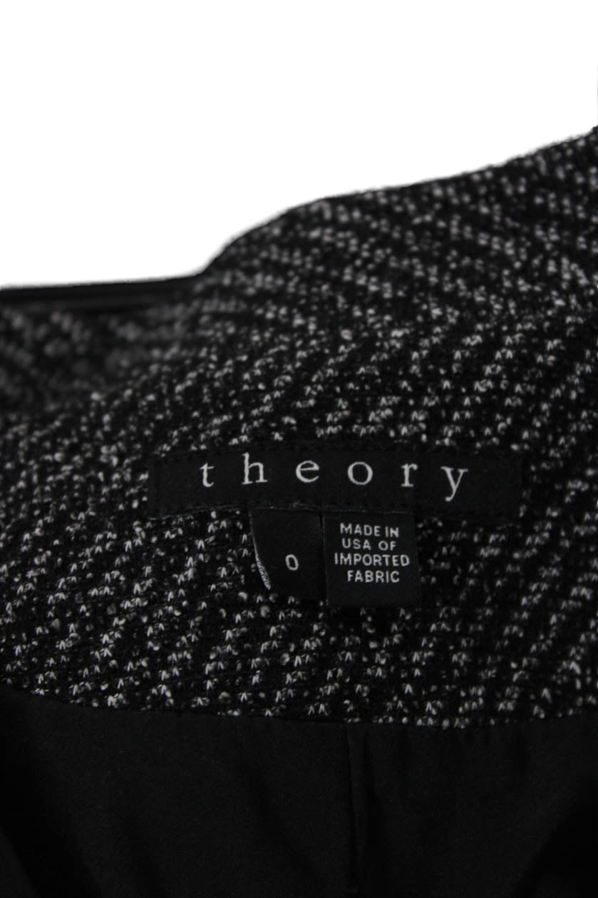 Theory Womens Long Sleeve Front Zip Mock Neck Jacket Black White Cotton Size 0