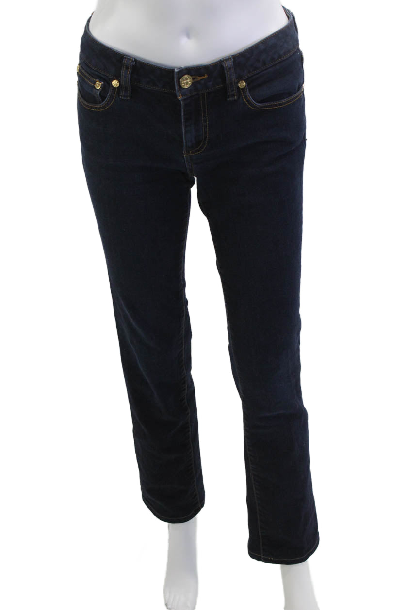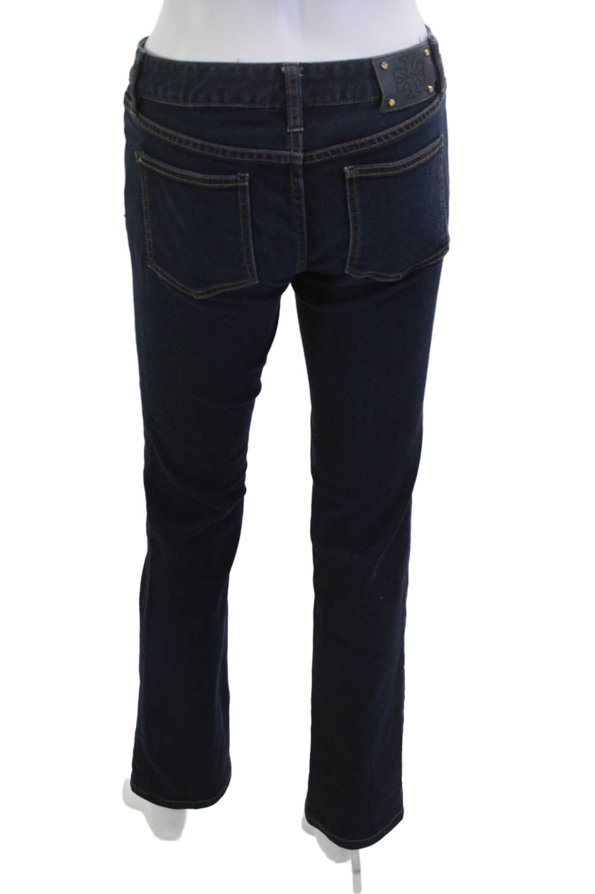 Tory Burch Womens Dark Blue Straight Jeans Mid Rise Button Size 26