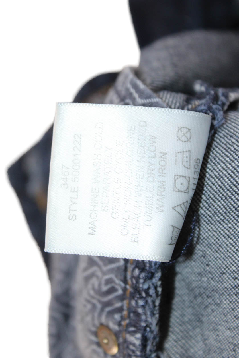 Fendi Womens Button Front Collared Velvet Logo Jean Jacket Black Denim Size 2