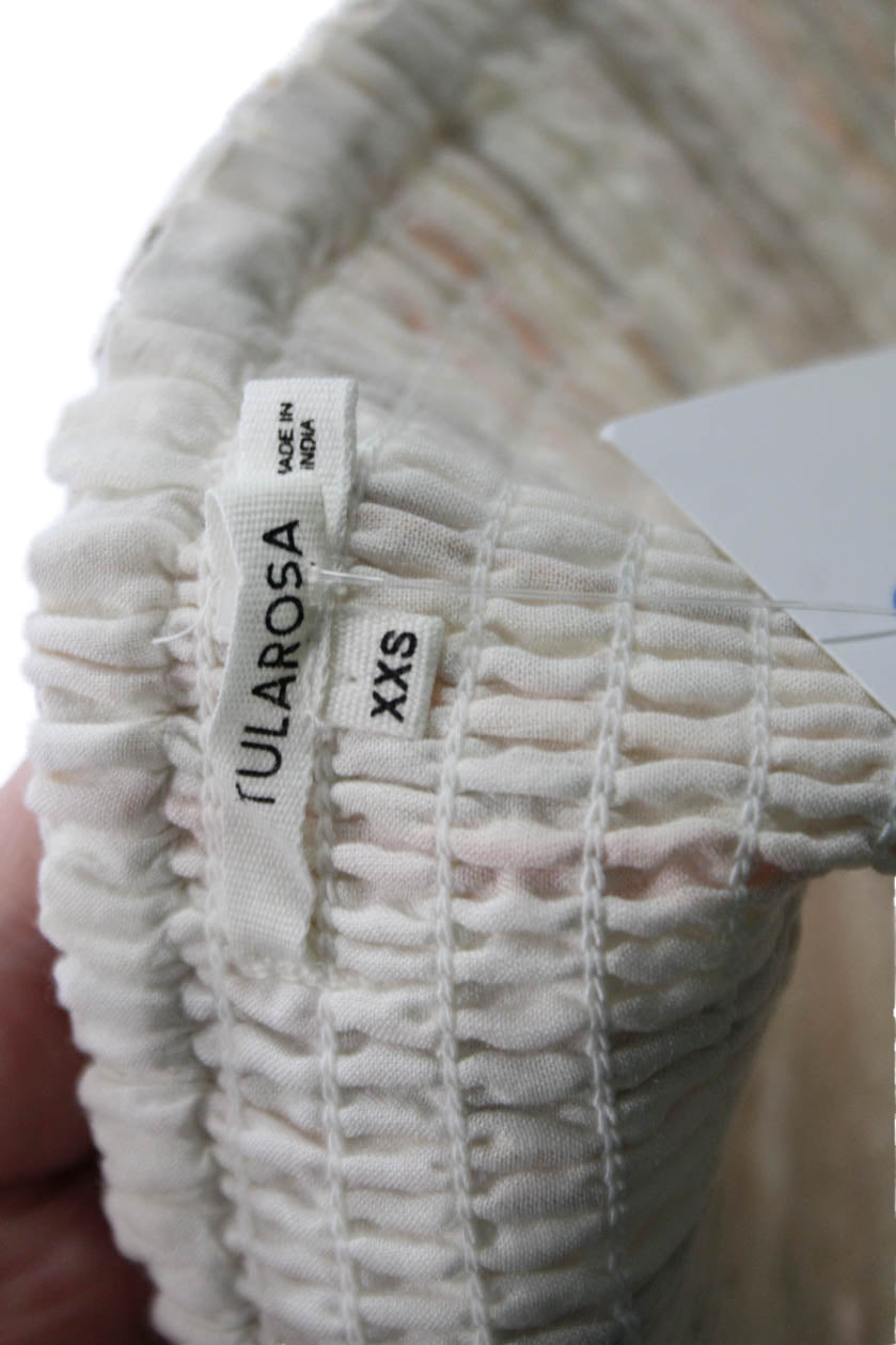 Tularosa Women Cropped Sleeveless Plaid Bohemian Top Beige Cotton Size 2XS