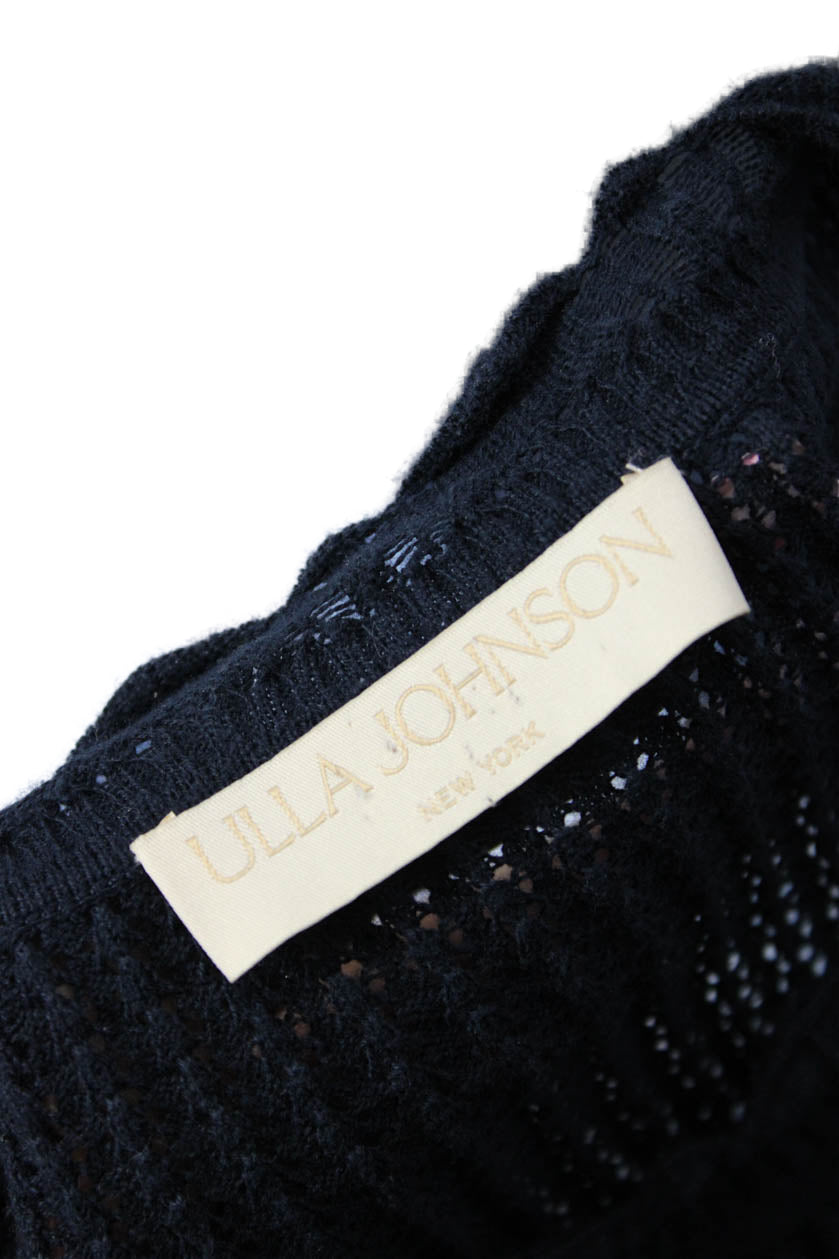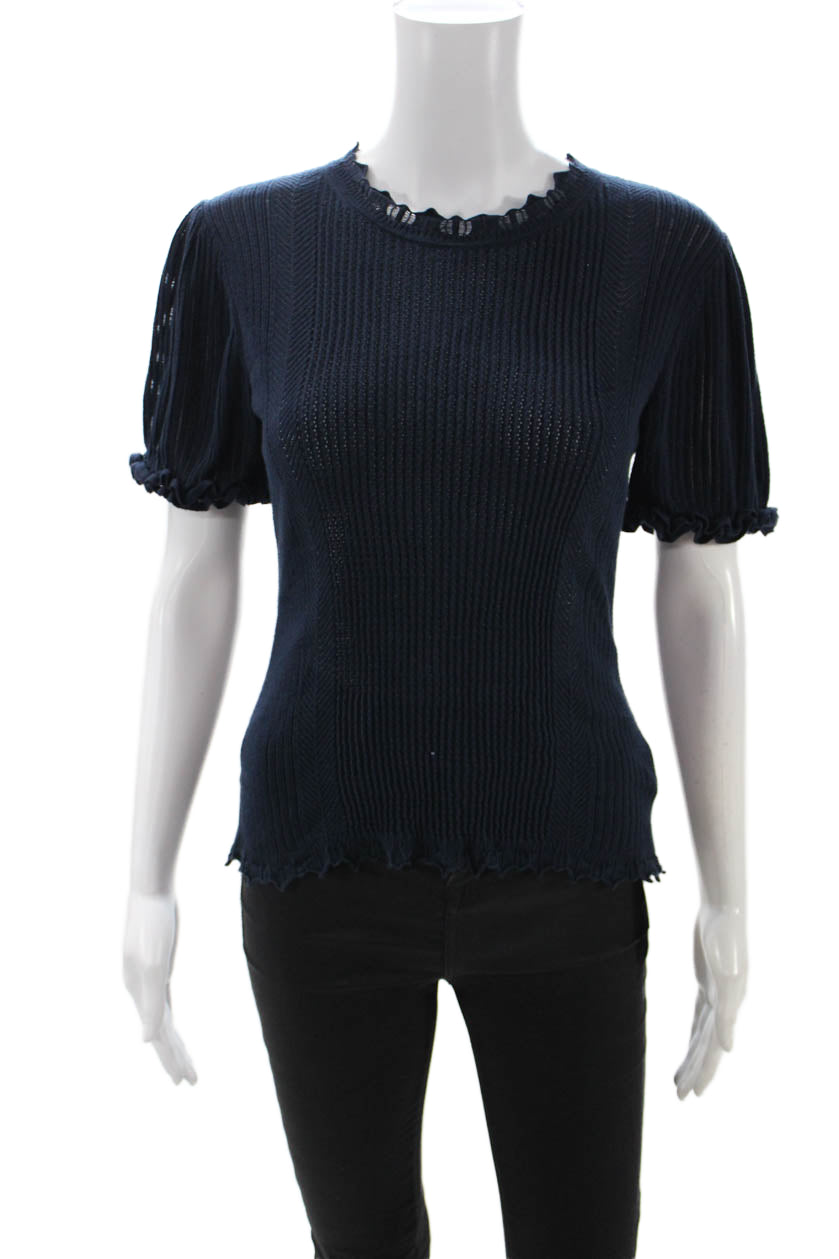 Ulla Johnson Women Dark Blue Cotton Crew Neck Short Sleeve Top Designer Size M
