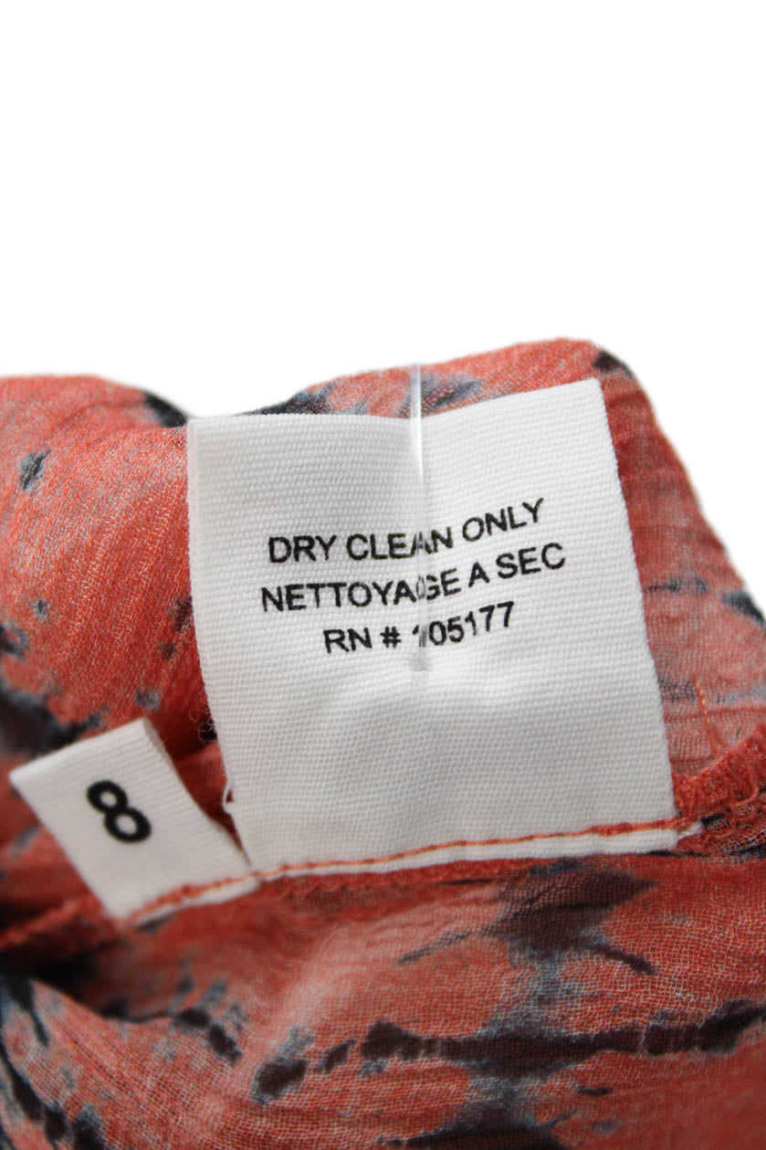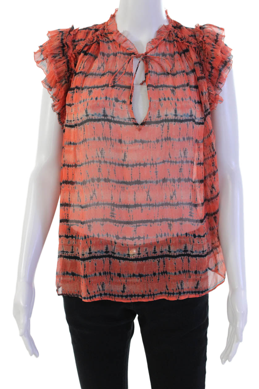 Ulla Johnson Womens Silk Tie Dye Print Ruffled Blouse Orange Navy Blue Size 8