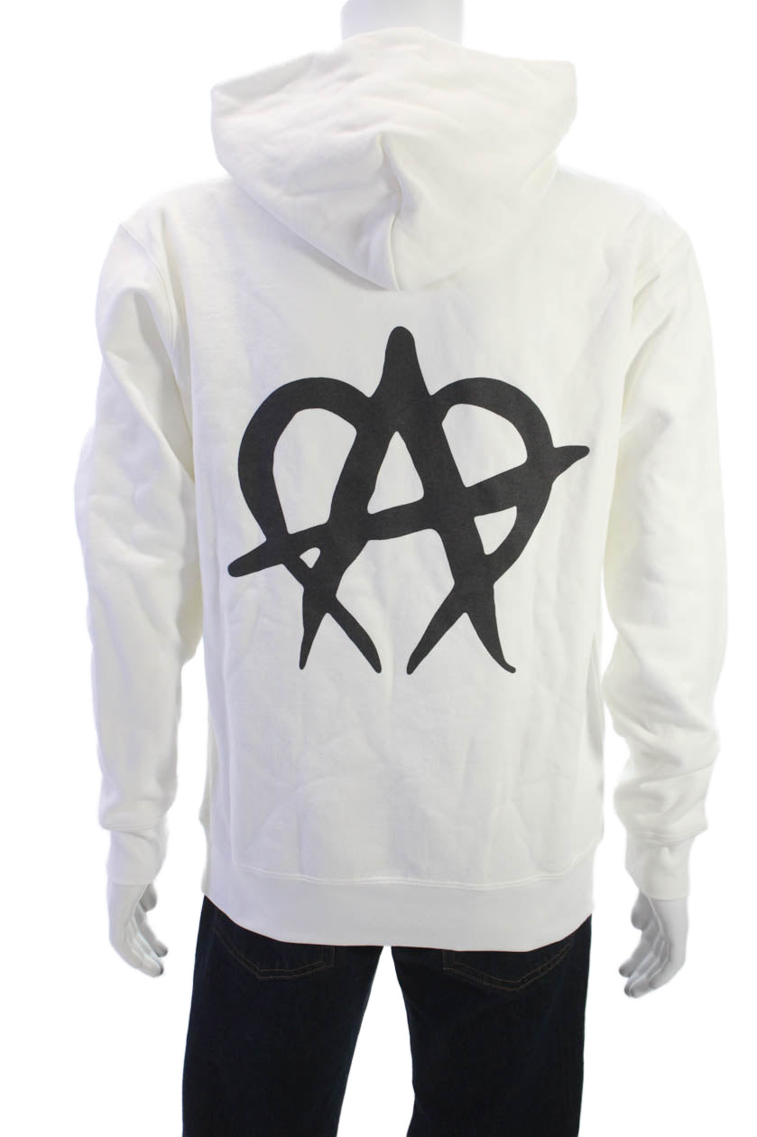 Unmanageable Womens Pullover Hoodie White Graphic Mock Neck Long Sleeve Size S